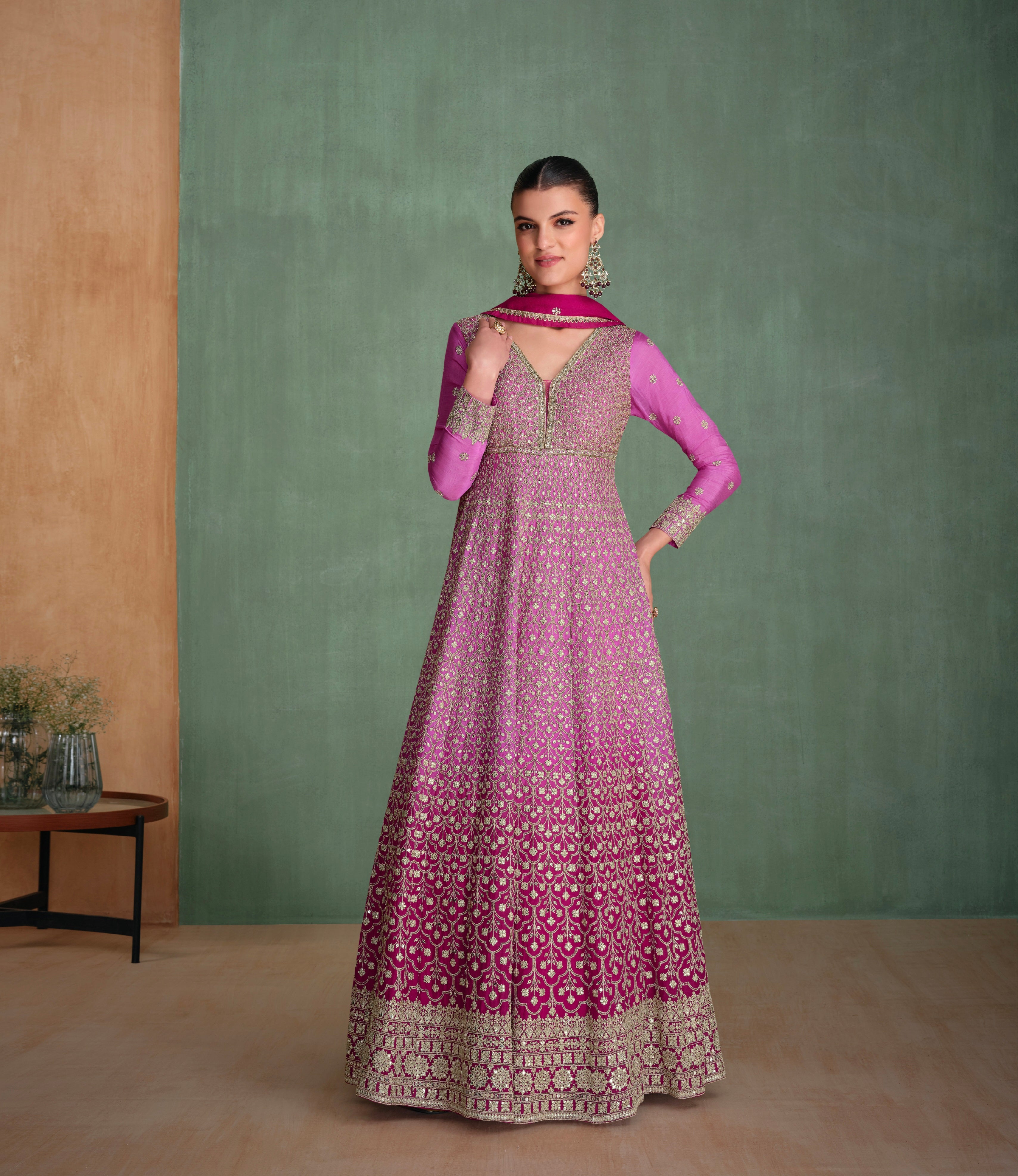 Purple Georgette Anarkali Suit with Heavy Swarovski Embroidery