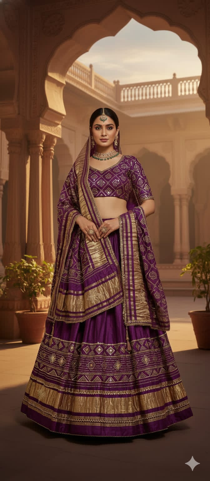 Purple Pure Modal Gajji Silk Rajsthani Lehenga Choli