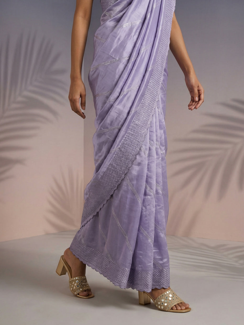 Purple Pure Raspberry Silk Embroidered Leheriya Work and Sequin Saree