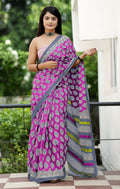 Purple Pure Soft Cotton Bagru Block Print Saree