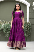 Purple Pure Soft Silk Zari Weaving Anarkali Gown