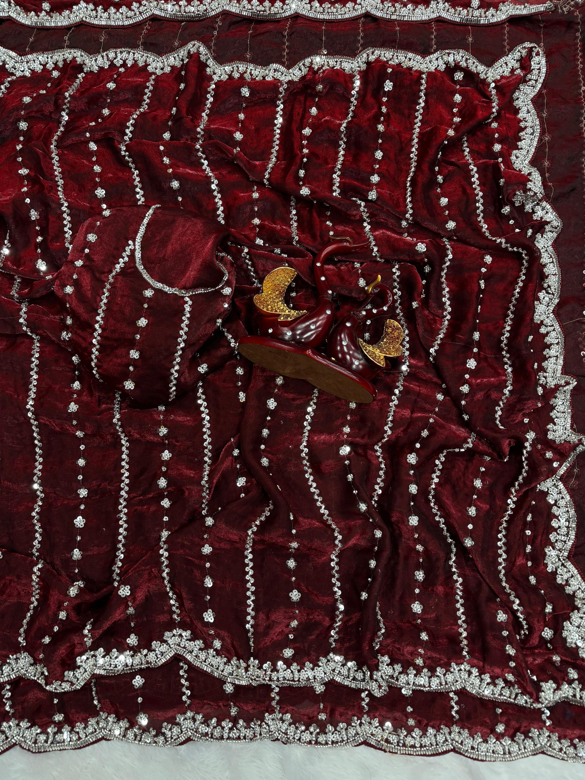 Wedding Designer Pure Soft Space Silk Sequins Saree