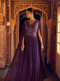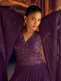 Purple Real Georgette Embroidered Anarkali Gown with Dupatta