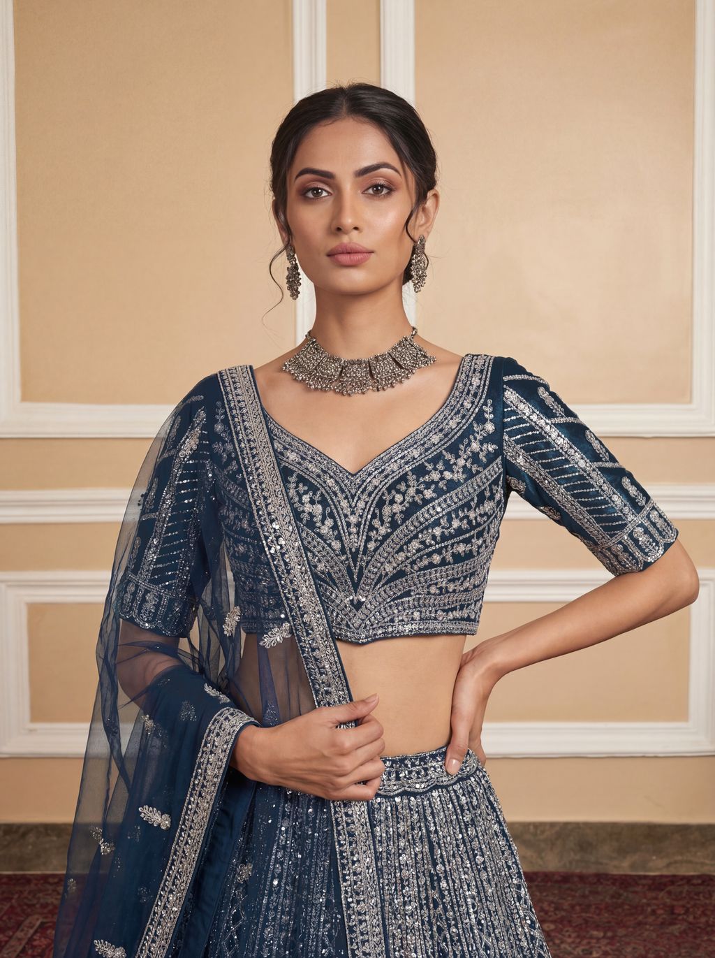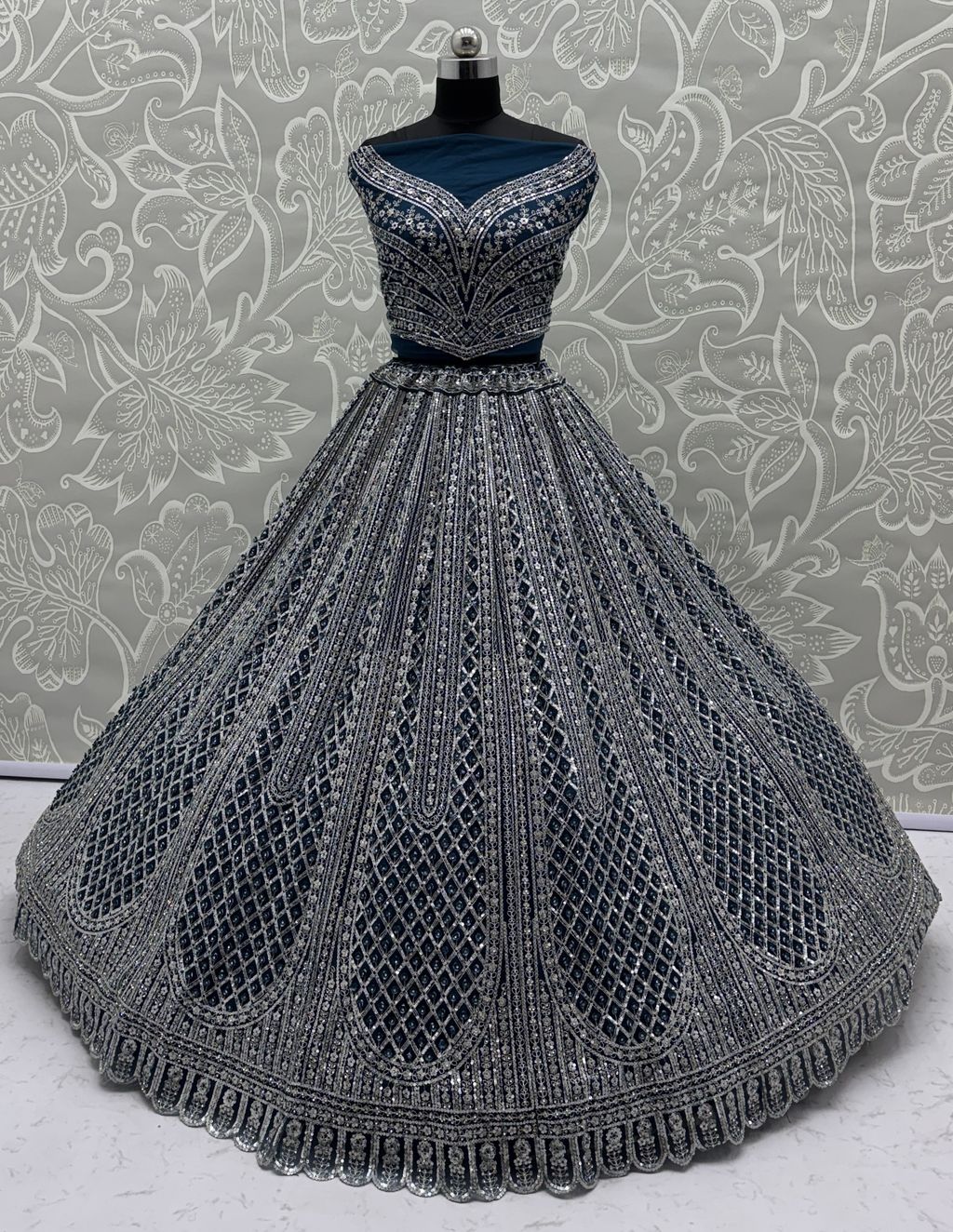 Rama Blue Pure Soft Net Heavy Embroidery Work Bridal Lehenga