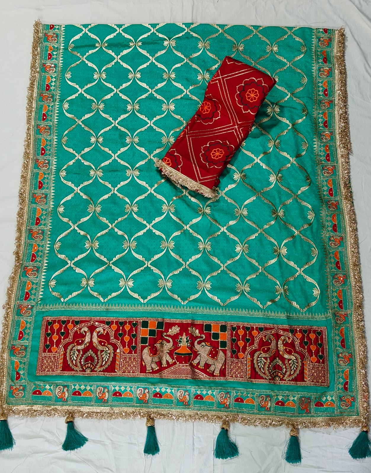Rama Green Pure Jacquard Soft Silk Traditional Bandhani Saree