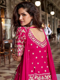 Rani Pink Designer Embroidered Organza Palazzo Set with Dupatta