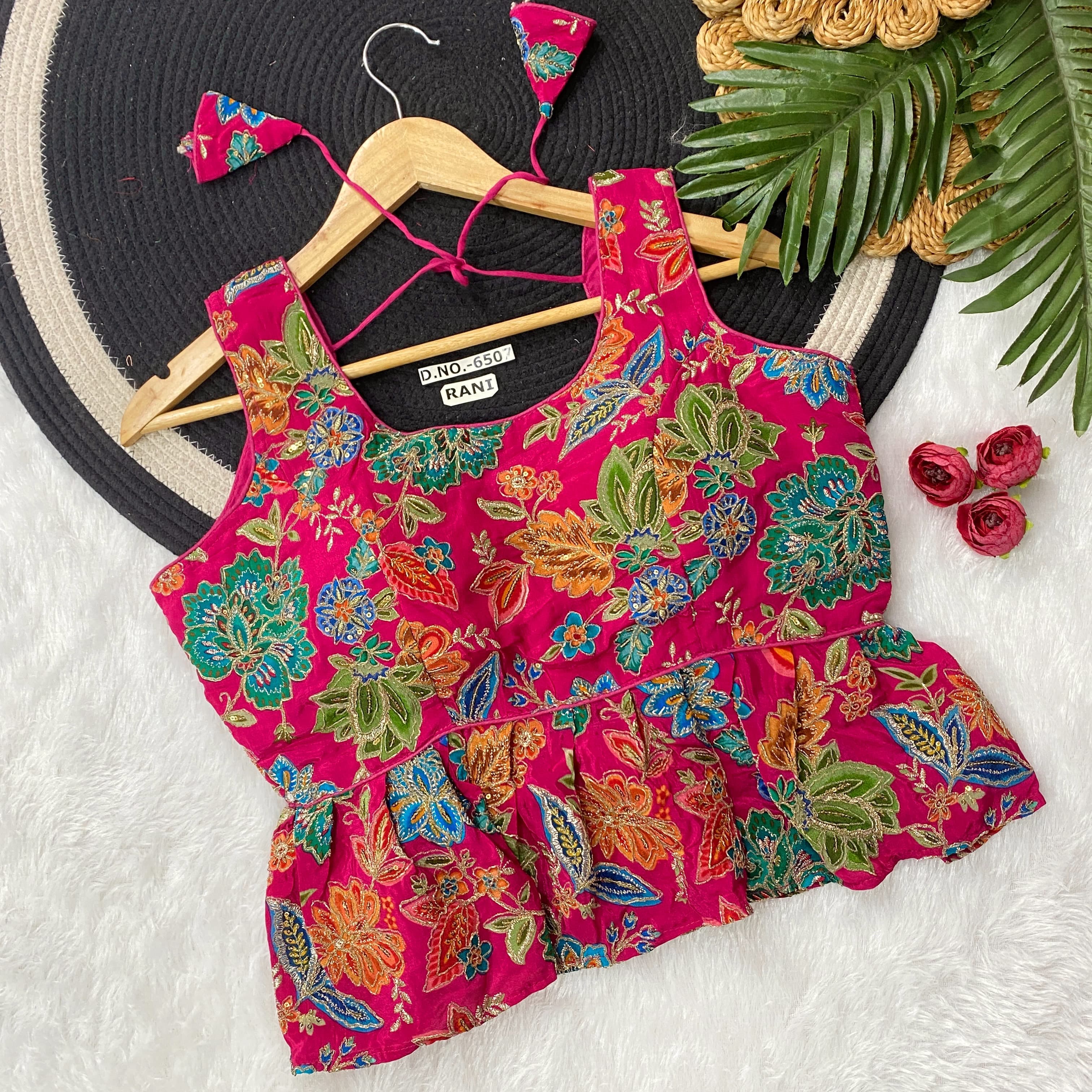 Rani Pure Crape Viscose Floral Print Half Sleeve Peplum Blouse