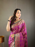 Silk saree with bandhani weaving and rich weaved pallu with tassels