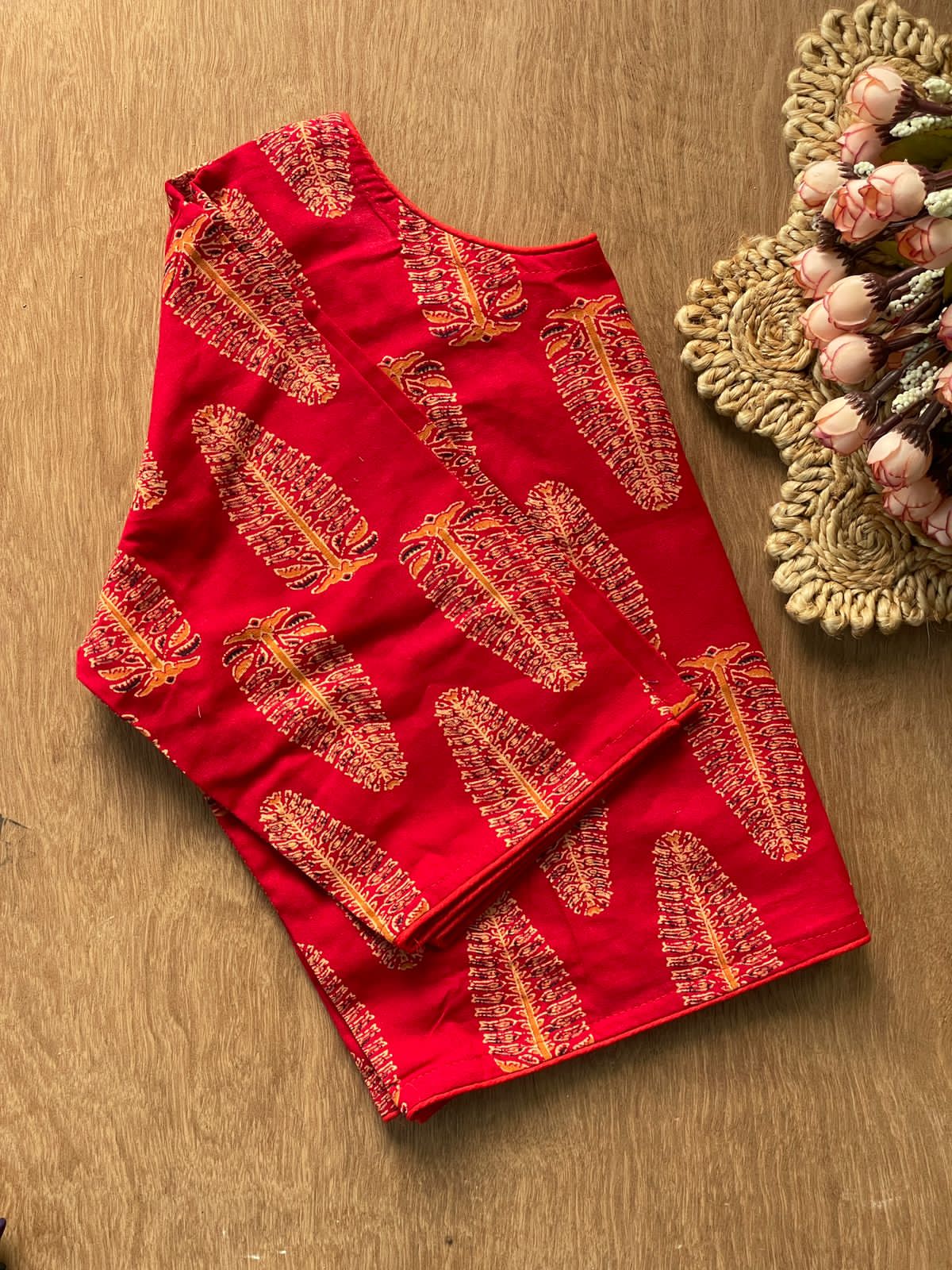 Readymade Pure Soft Cotton Ajarkh Print Handblock Blouse loading