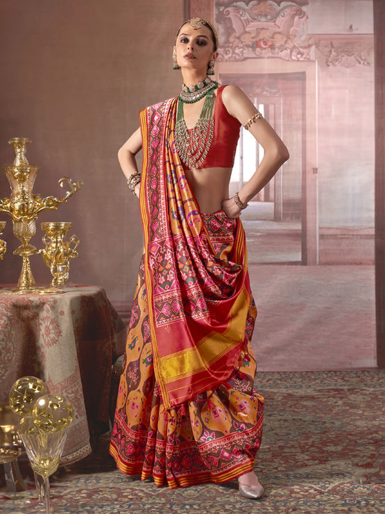 Red & Yellow Pure P.V Silk Printed Patan Patola Silk Saree