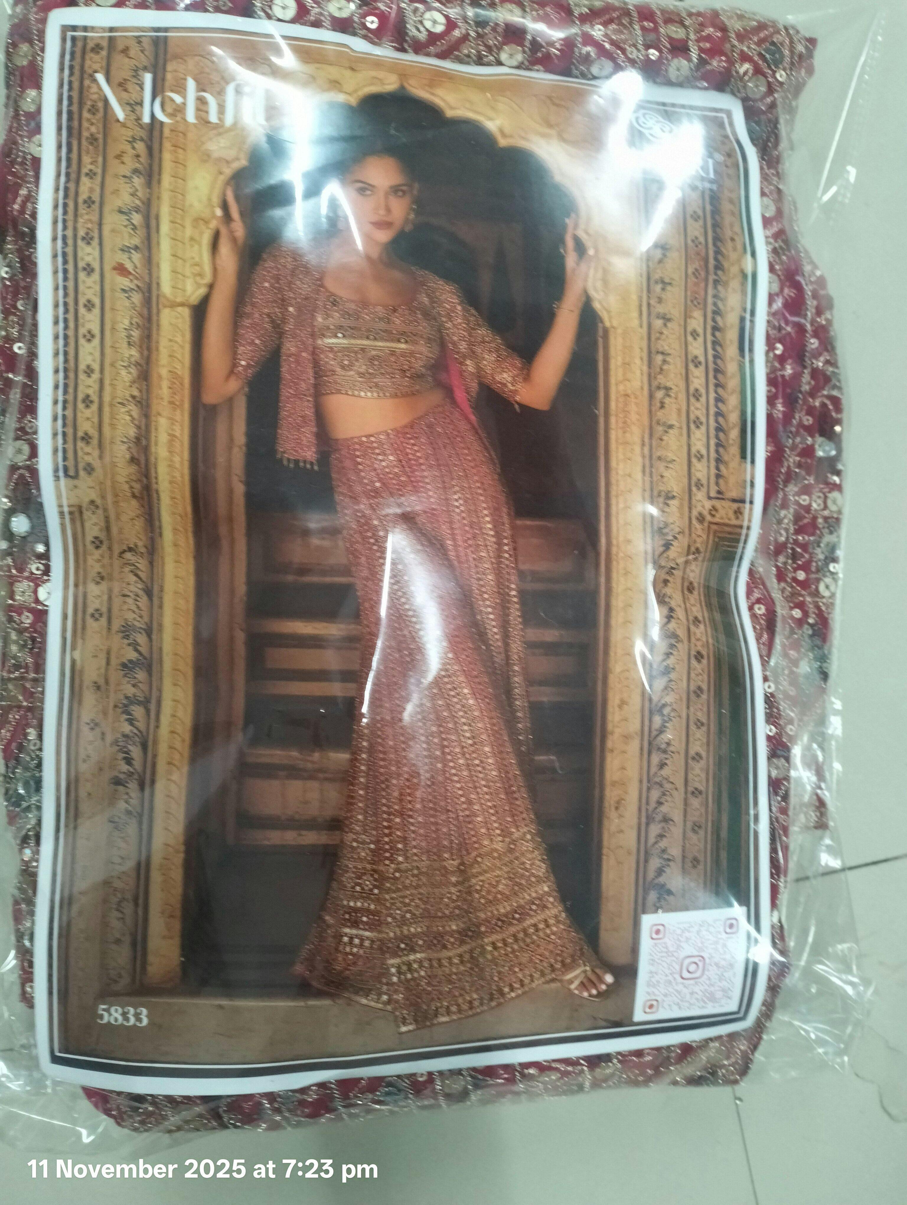 Red Bridal Georgette Palazzo Set with Embroidered Jacket