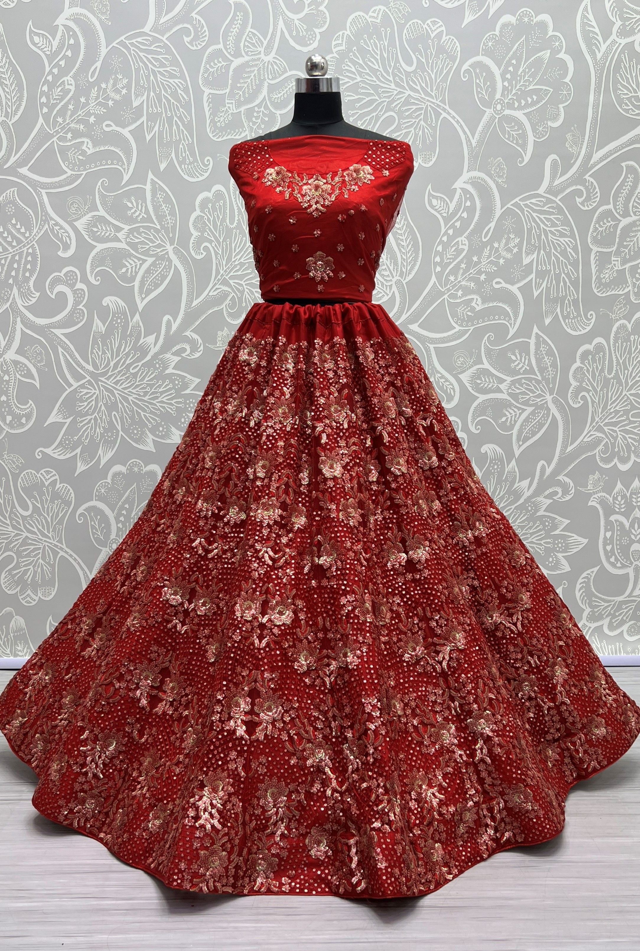Red Bridal Silk Lehenga with Heavy Net Fancy Flower work Double Sequins Thread and zari work Bridal Lehenga Choli