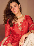 Red Embroidered Chinon Silk Sharara Set with Dupatta
