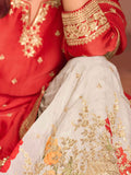 Elevate your festive wardrobe with this Red Embroidered Chinon Silk Sharara Set. Featuring detailed golden embroidery on a rich Chinon silk top, paired with a floral printed sharara and a finely crafted dupatta, this ensemble combines tradition with sophistication. Its luxurious texture ensures comfort for long celebrations, making it an ideal choice for weddings, receptions, and special occasions.