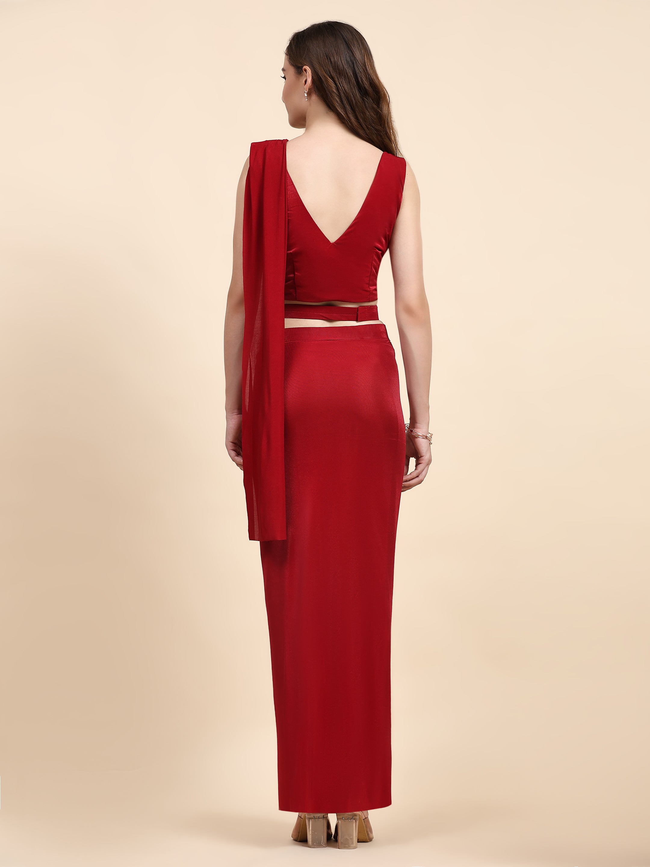 Red Pure Imported Crystle Ready-to-Wear Saree
