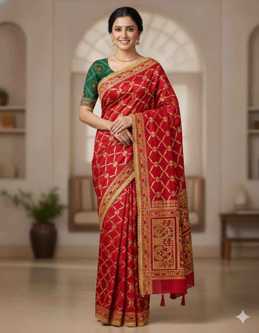 Red Pure Jacquard Soft Silk Traditional Bandhani Saree