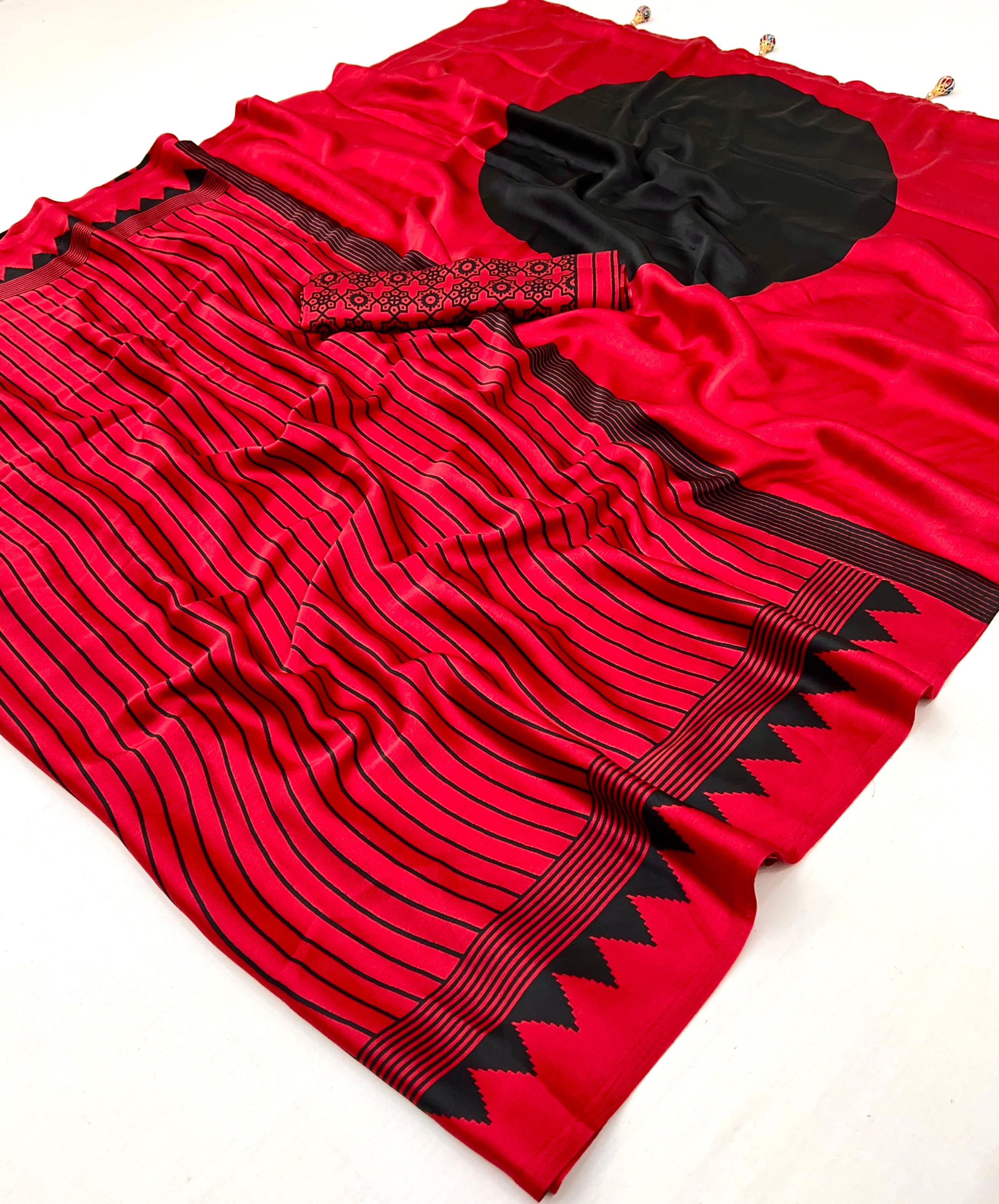 Red Pure Semi Modal Silk Ajarkh Printed Saree