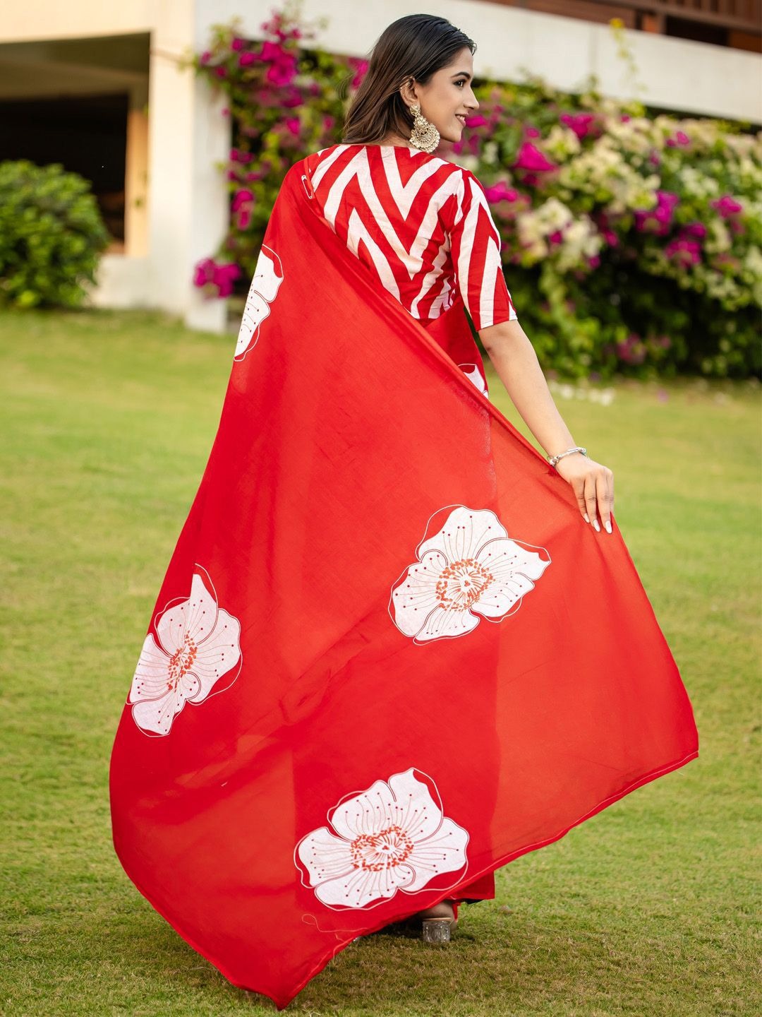 Red Pure Soft Cotton Bagru Block Print Saree