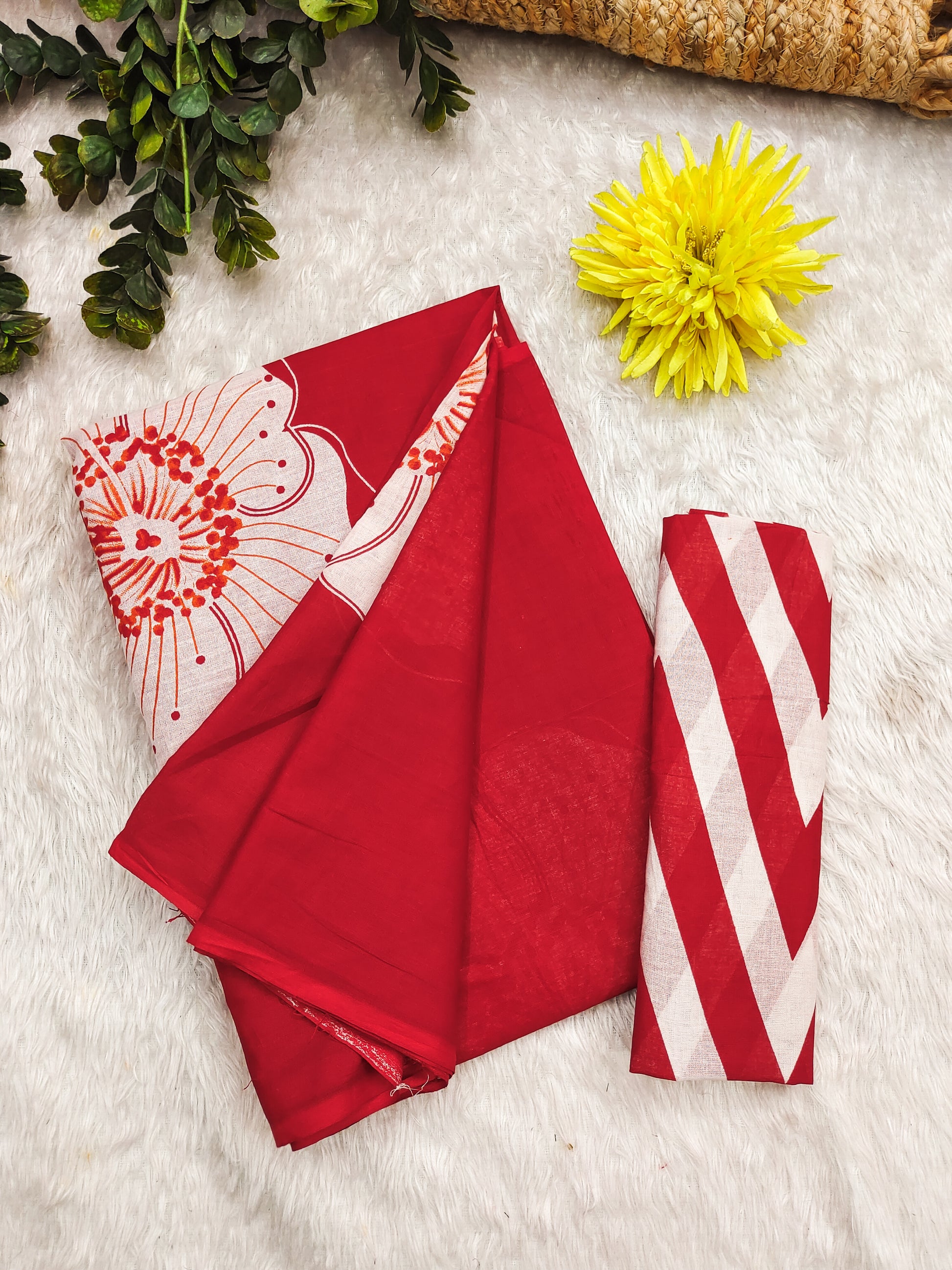 SAREES : 6.30 MTR PURE COTTON HAND BLOCK PRINT FLOWER TEST SAREES AND BLOUSE PICE
