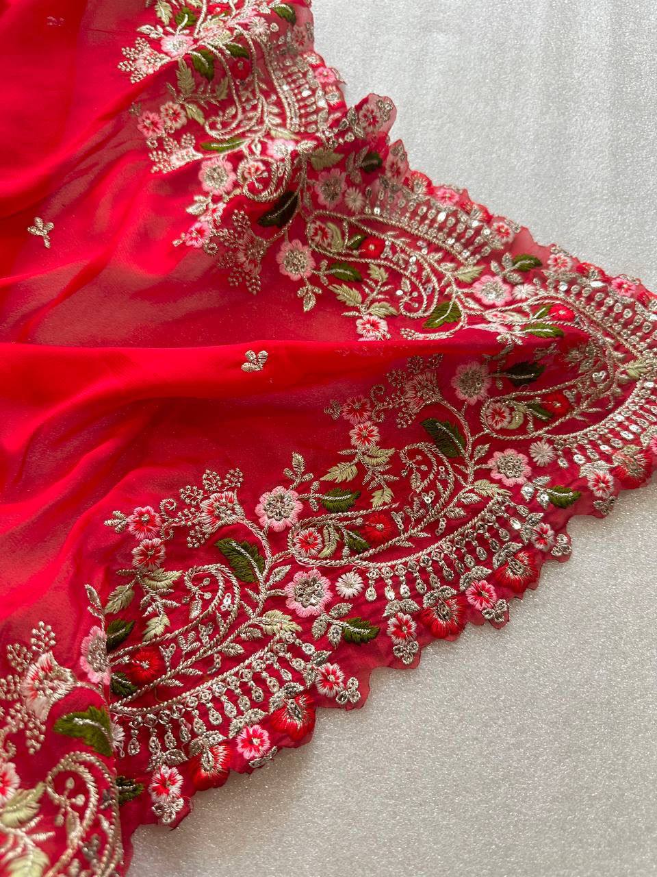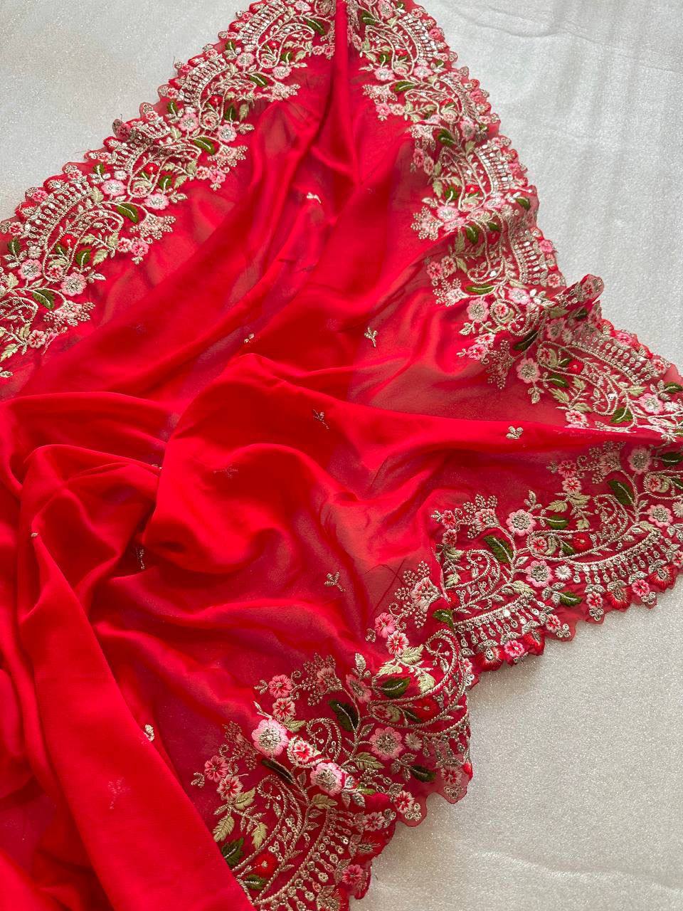 Red Pure Soft Rangoli silk With Multi Thread Sequins Saree