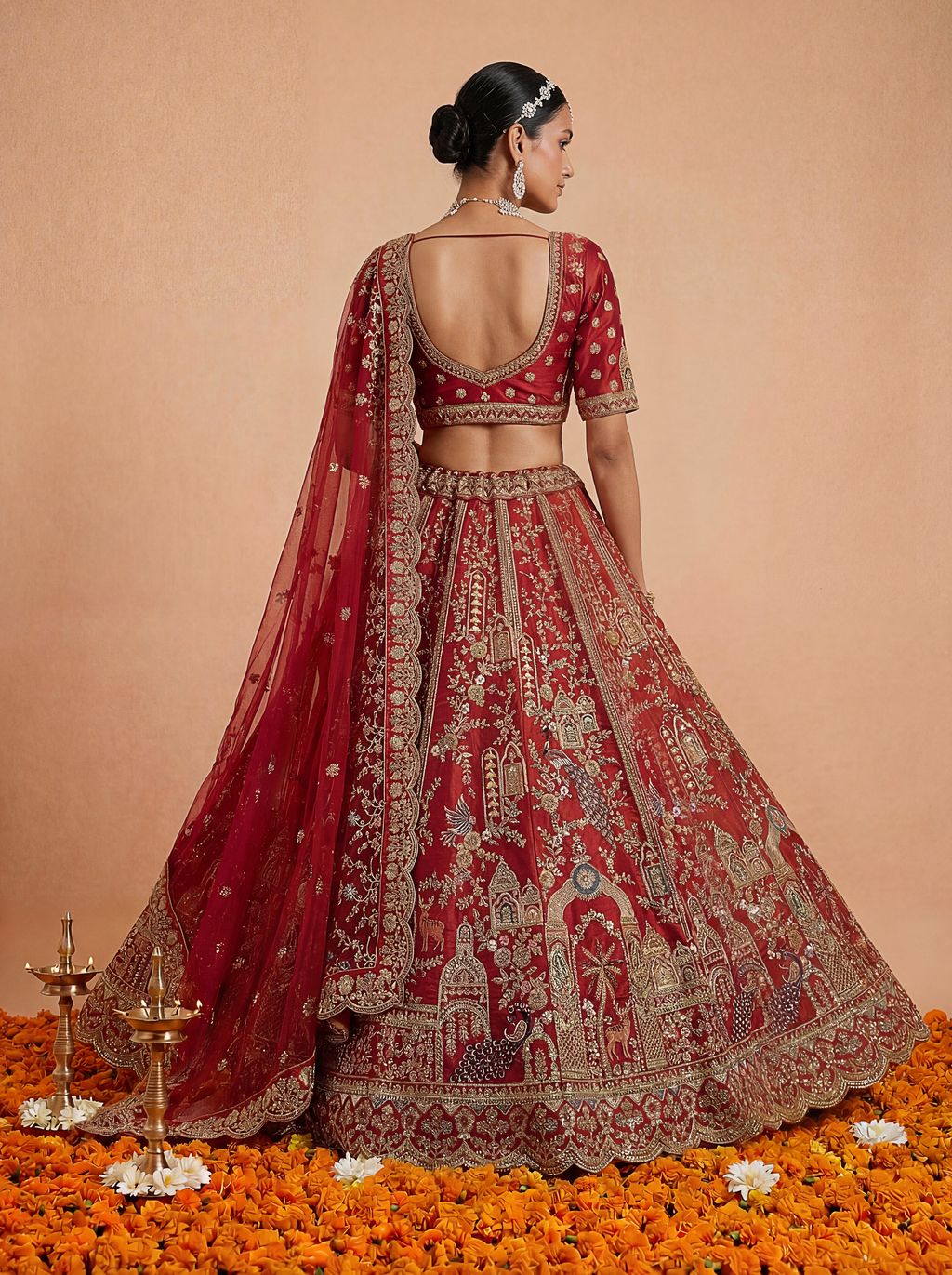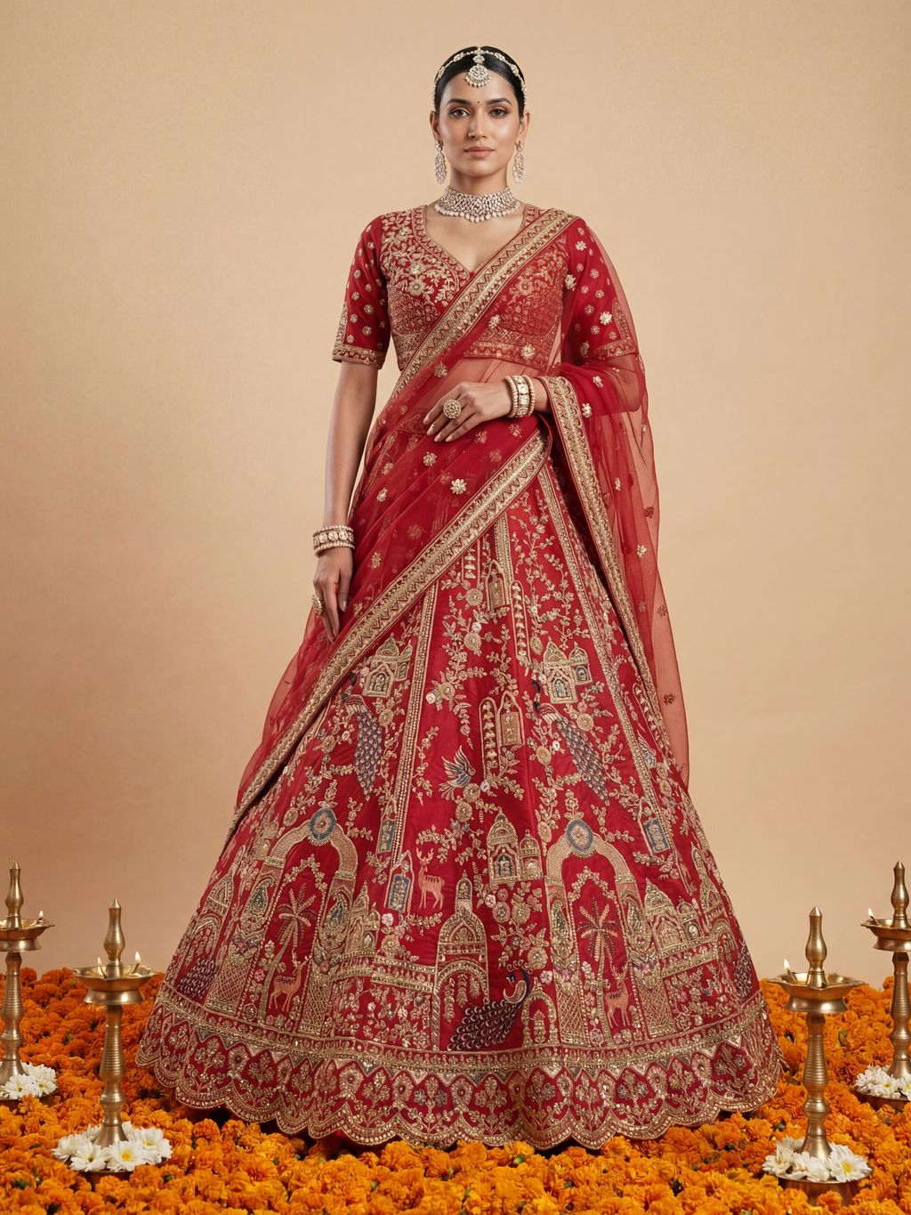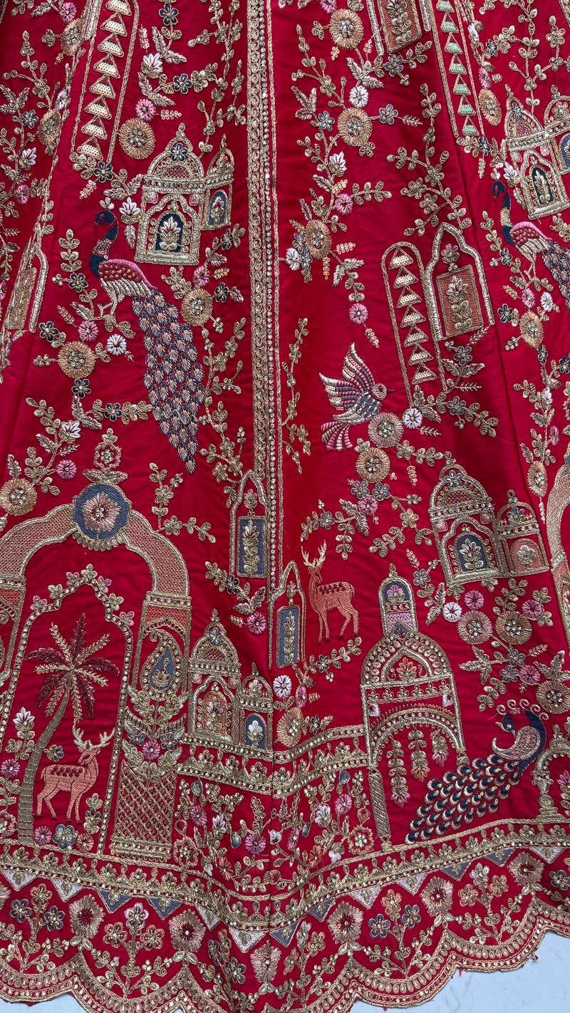Red Pure Soft Silk Heavy Embroidery Work Bridal Lehenga