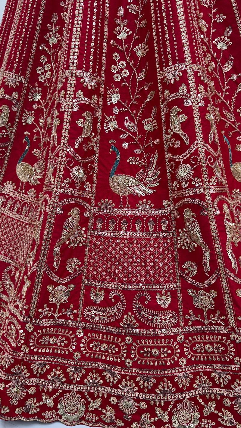 Red Pure Soft Silk Heavy Embroidery Work Bridal Lehenga