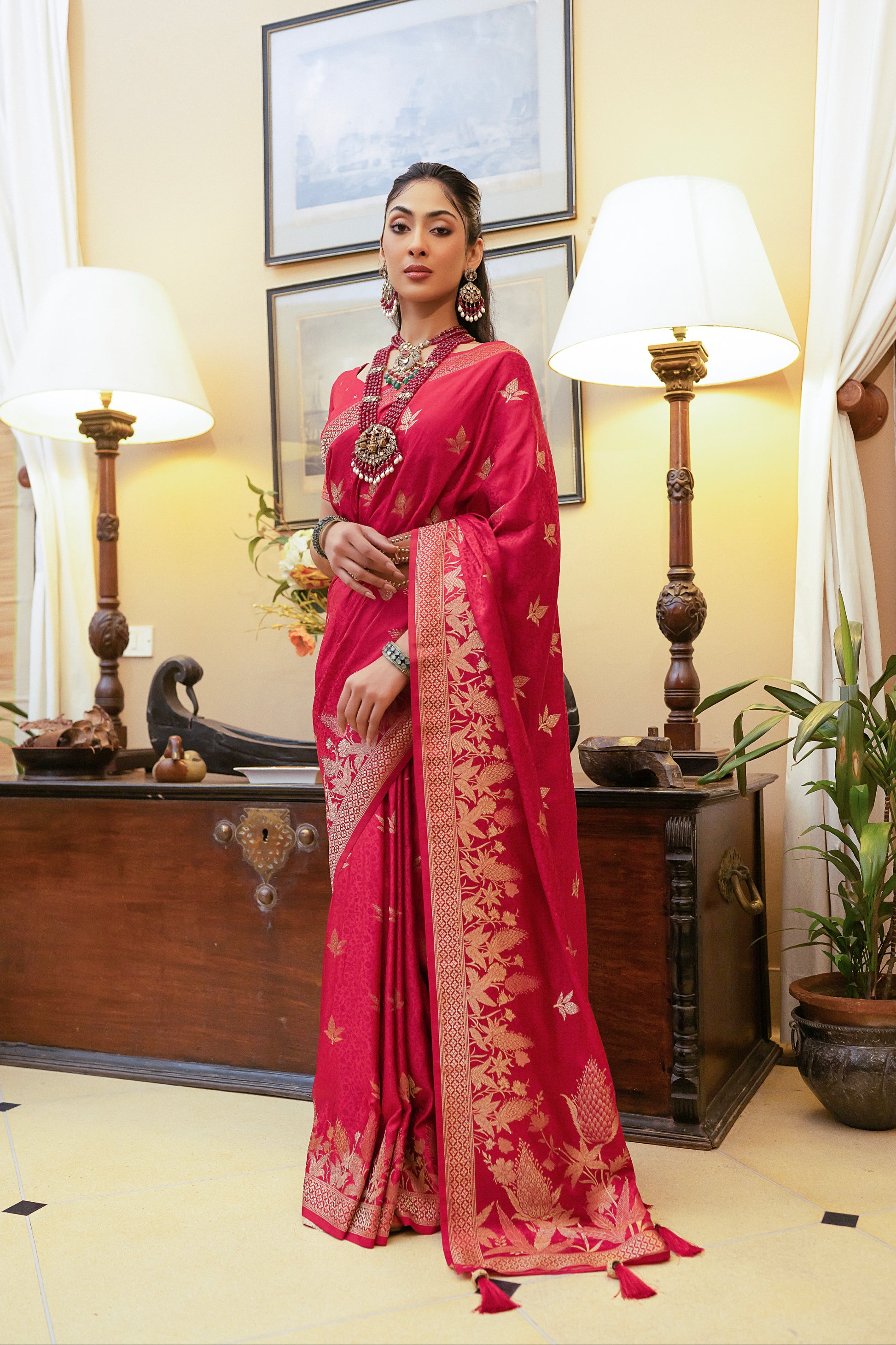- Design: Intricate zari weaving for an embossed, sophisticated look.