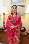 Red Satin Silk Saree with Intricate Zari Weaving and Satin Silk Blouse