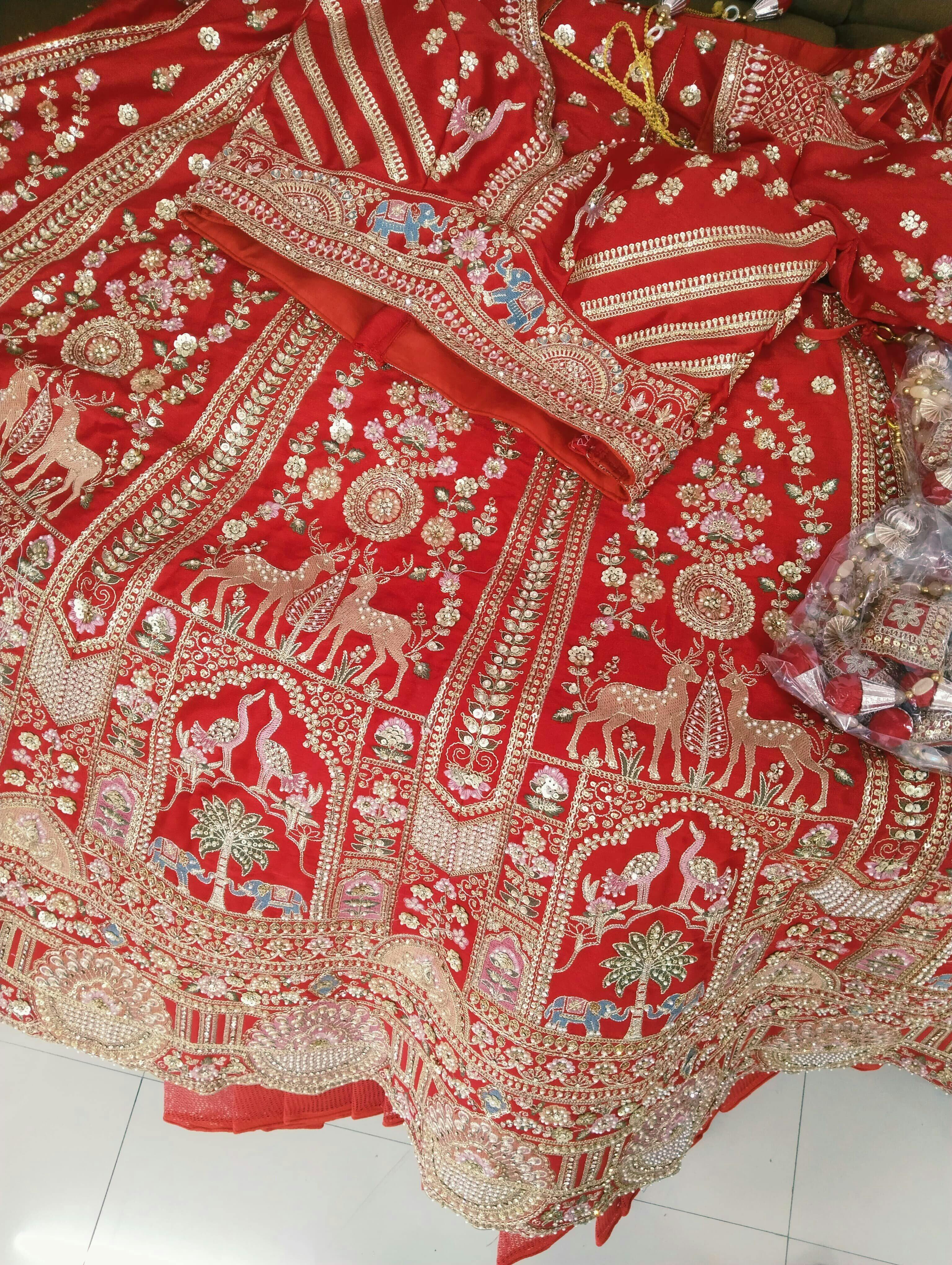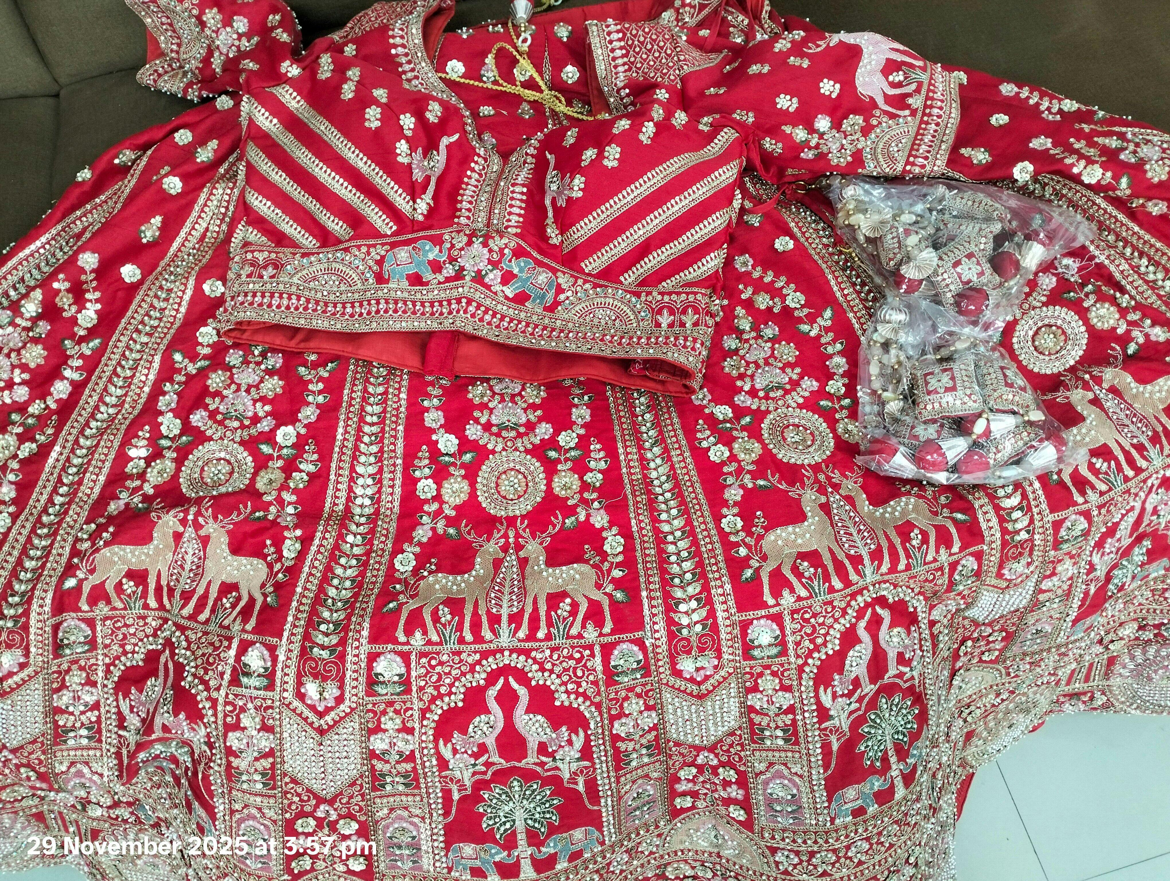 Red Silk Bridal Lehenga with Double Dupatta & Hand Embroidery
