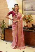 Rose Gold Satin Silk Saree with Intricate Zari Weaving and Satin Silk Blouse