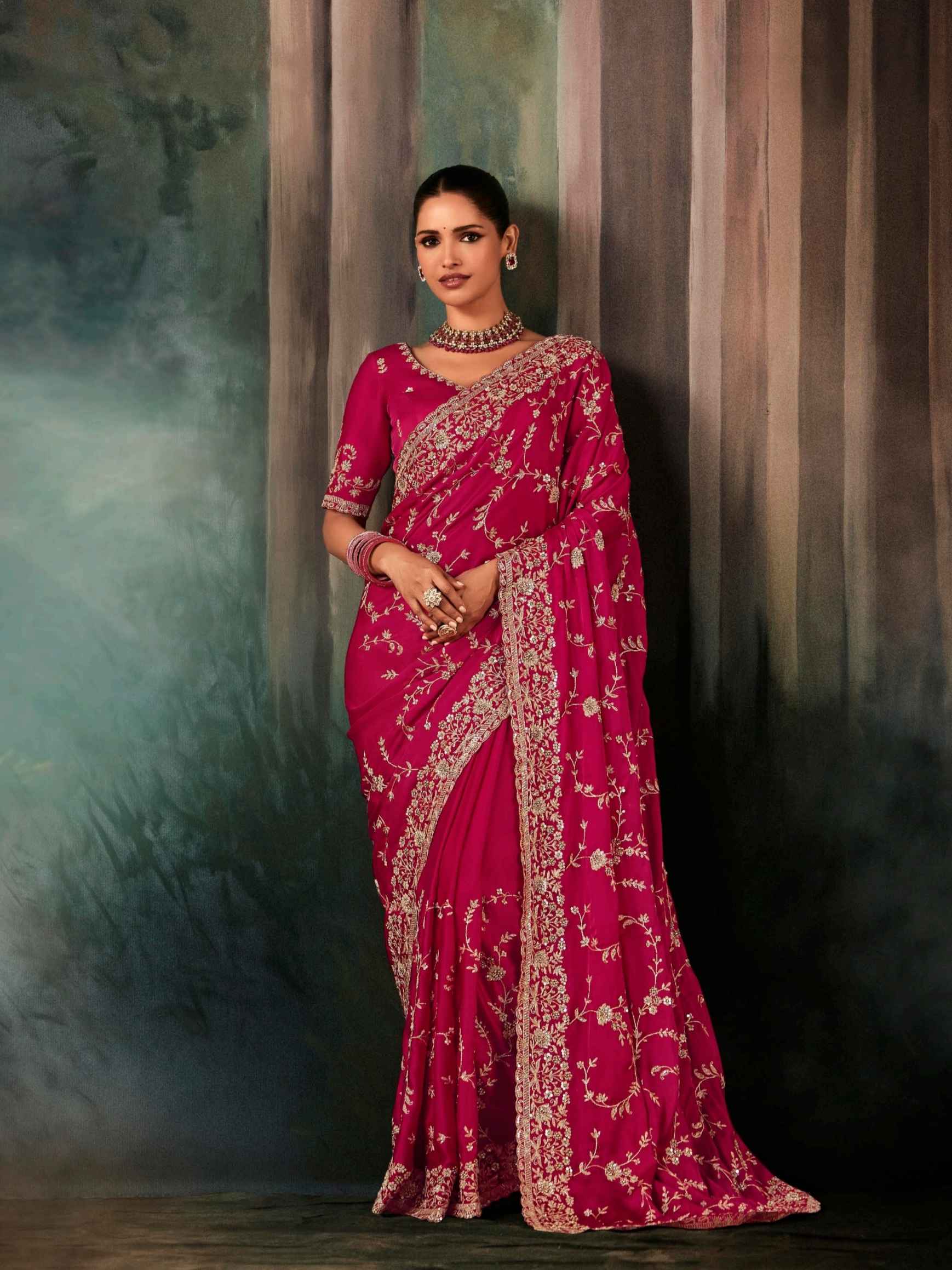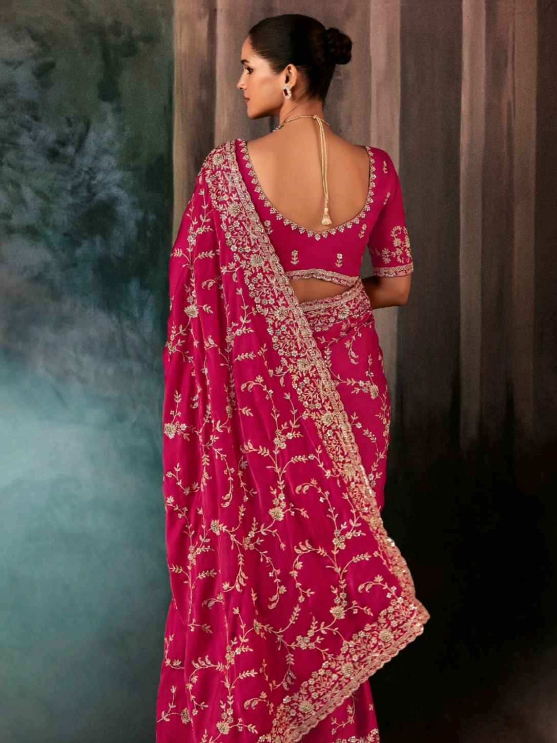 Rose Pink Designer Fancy Saree with Aari Handwork