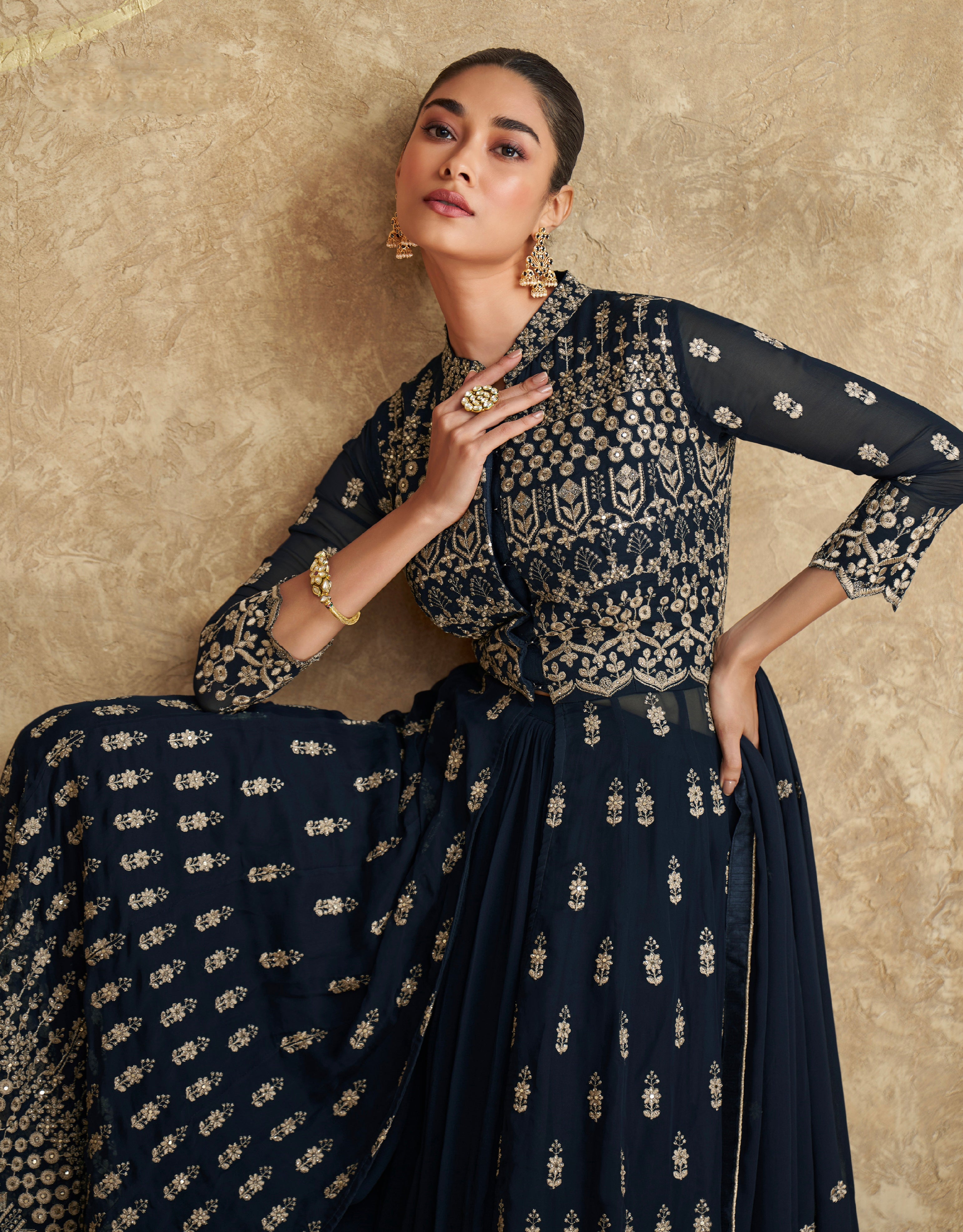 Royal Navy Blue Georgette Anarkali Suit with Dupatta
