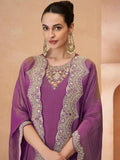 Royal Purple Embroidered Palazzo Suit with Jacket Dupatta