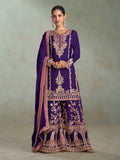 Royal Purple Real Chinon Embroidery Palazzo Suit