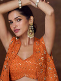 Rust Mirror Work Palazzo Suit with Embroidered Short Jacket Experience timeless elegance with this exquisite Rust Orange Palazzo Suit, meticulously crafted from premium Chinon Silk that flows with effortless grace. The intricately mirror-embellished blouse and jacket radiate festive brilliance, seamlessly blending traditional artistry with contemporary sophistication. The generously cut palazzo pants offer uncompromising comfort without sacrificing luxury, making this ensemble an ideal selection for haldi ceremonies, mehendi celebrations, festive dinners, and milestone occasions. Each detail has been thoughtfully designed to ensure you command attention while feeling absolutely at ease throughout your special moments.
