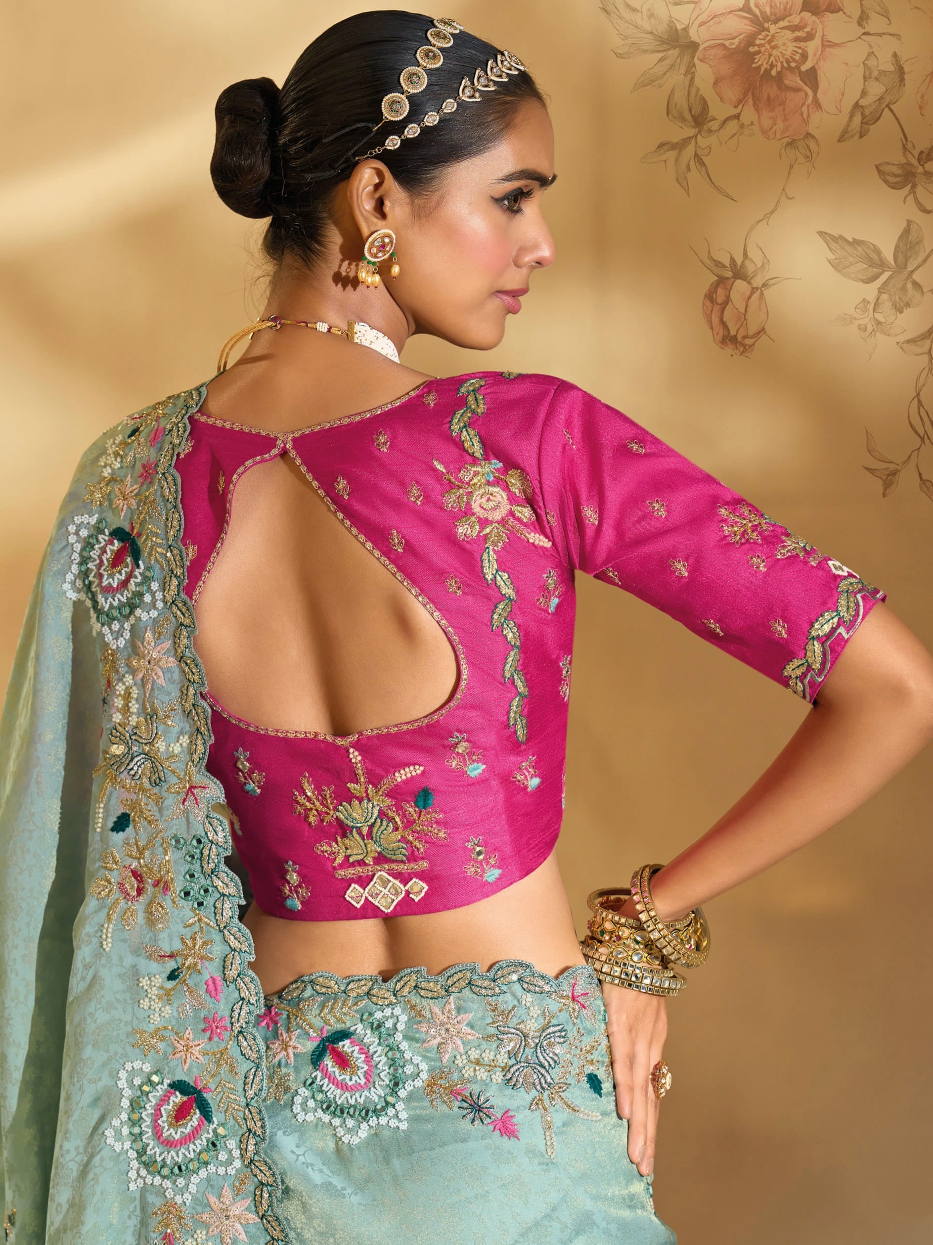 Sea Green Kanjipuram Silk Saree with Jari, Thread & Heavy Work