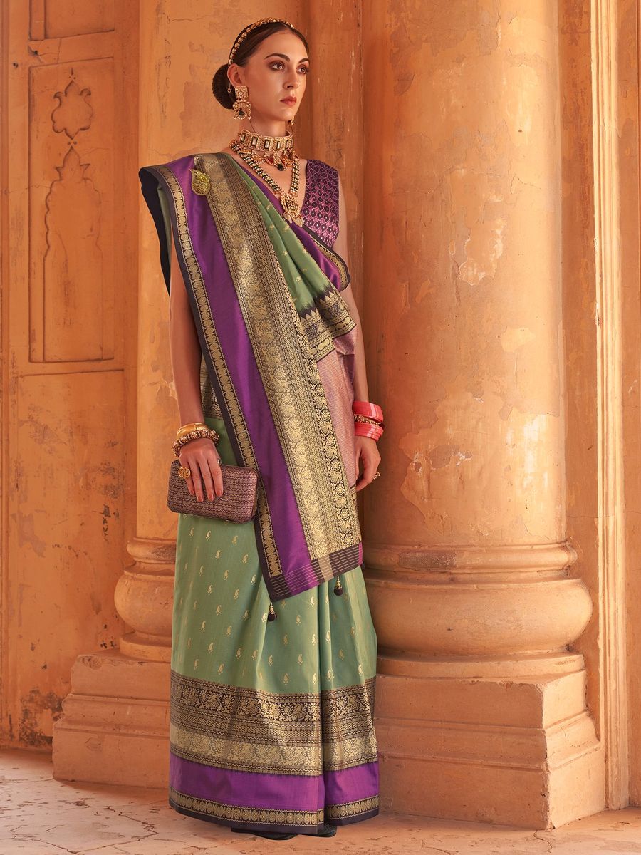 Sea Green Patola Silk Traditional Woven Saree