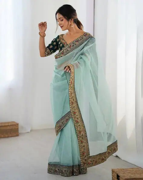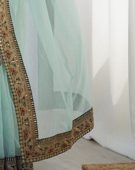 Sea Green Pure Soft Crush Banarasi Silk Saree