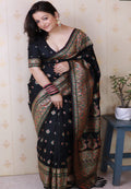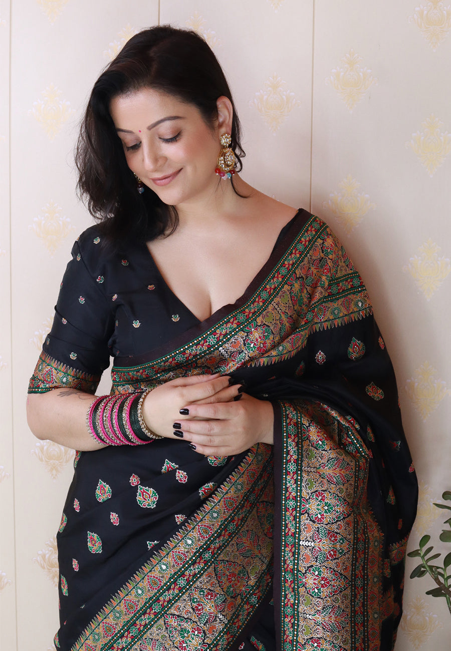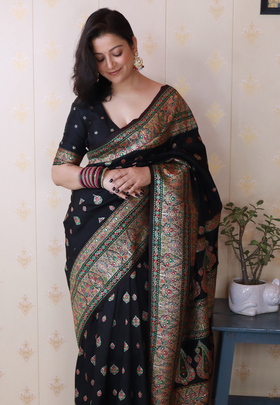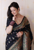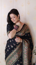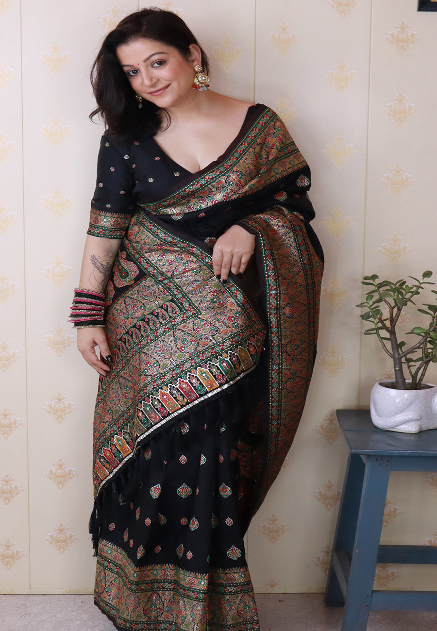 Shivani Jade Black Pashmina Kashmiri Silk Zari Woven Saree