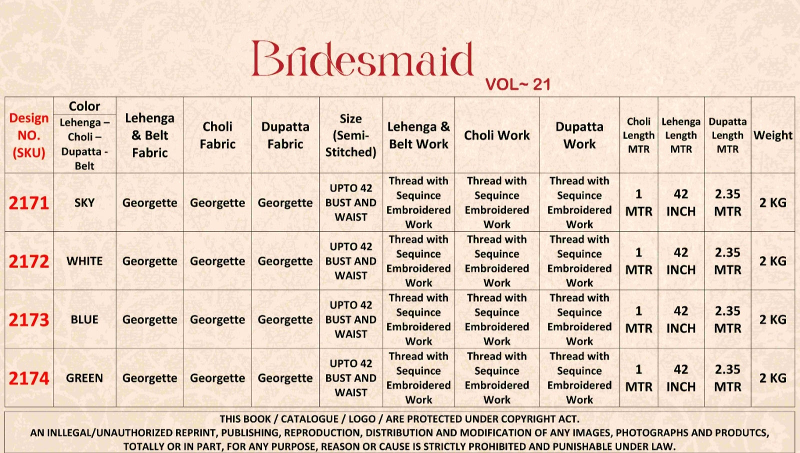 Shubhkala Bridesmaid Vol 21 Series 2171-2174 Fancy Lehenga