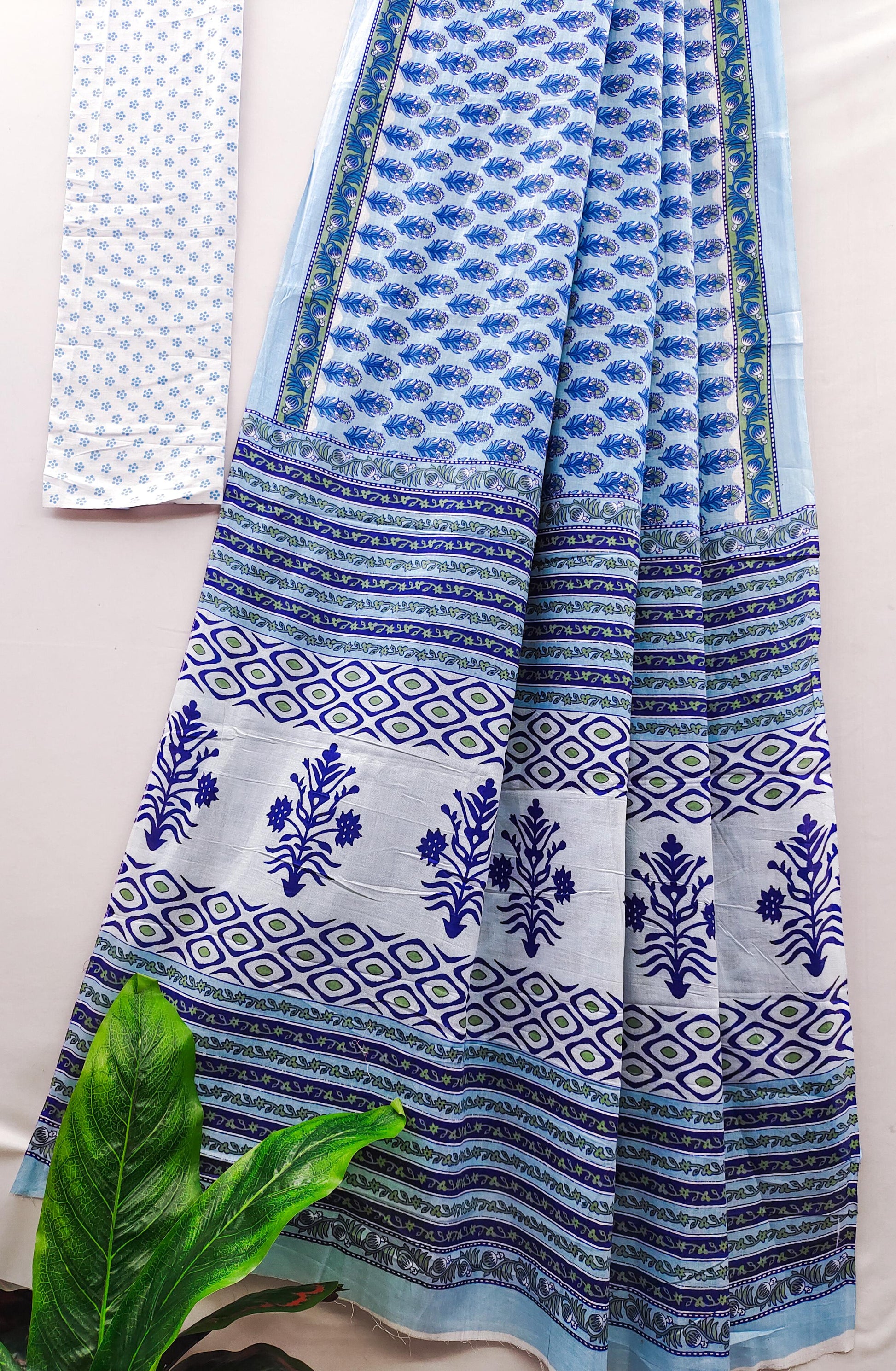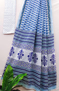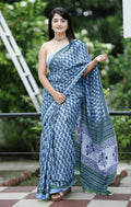 Sky Blue Pure Soft Cotton Bagru Block Print Saree
