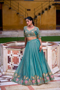 Sky Blue Pure Zari Shimmer Heavy Embroidery Wedding Lehenga Choli