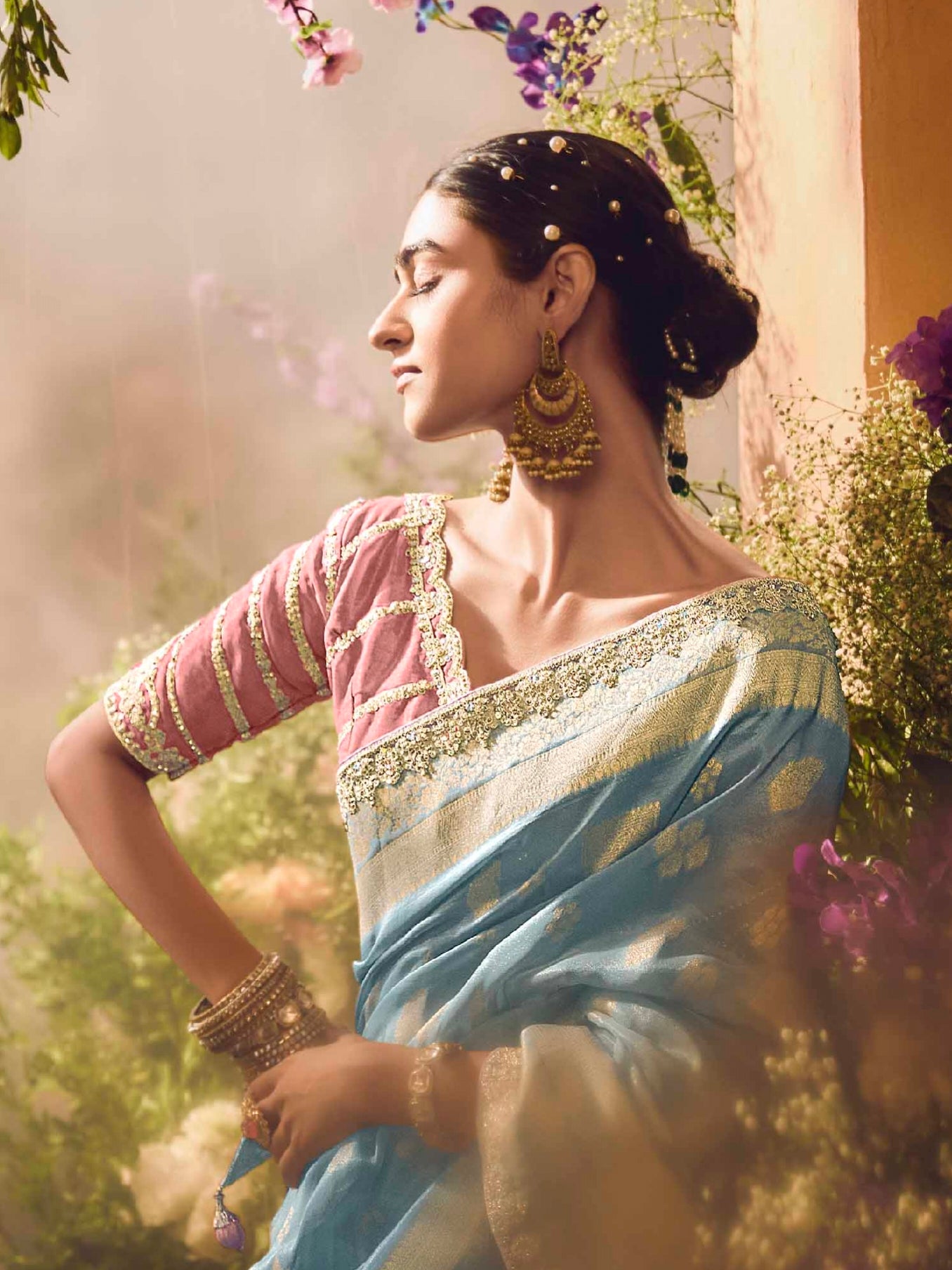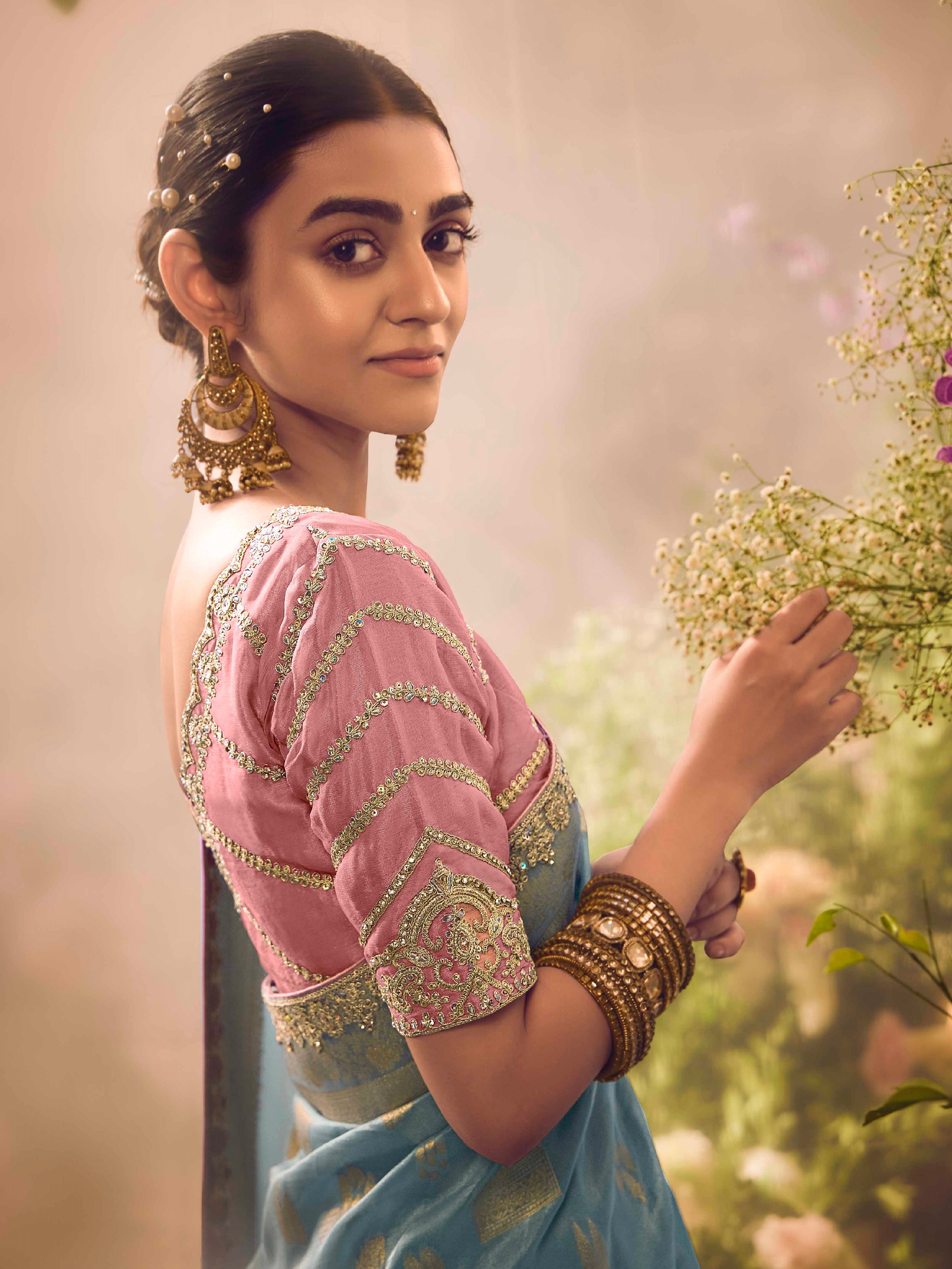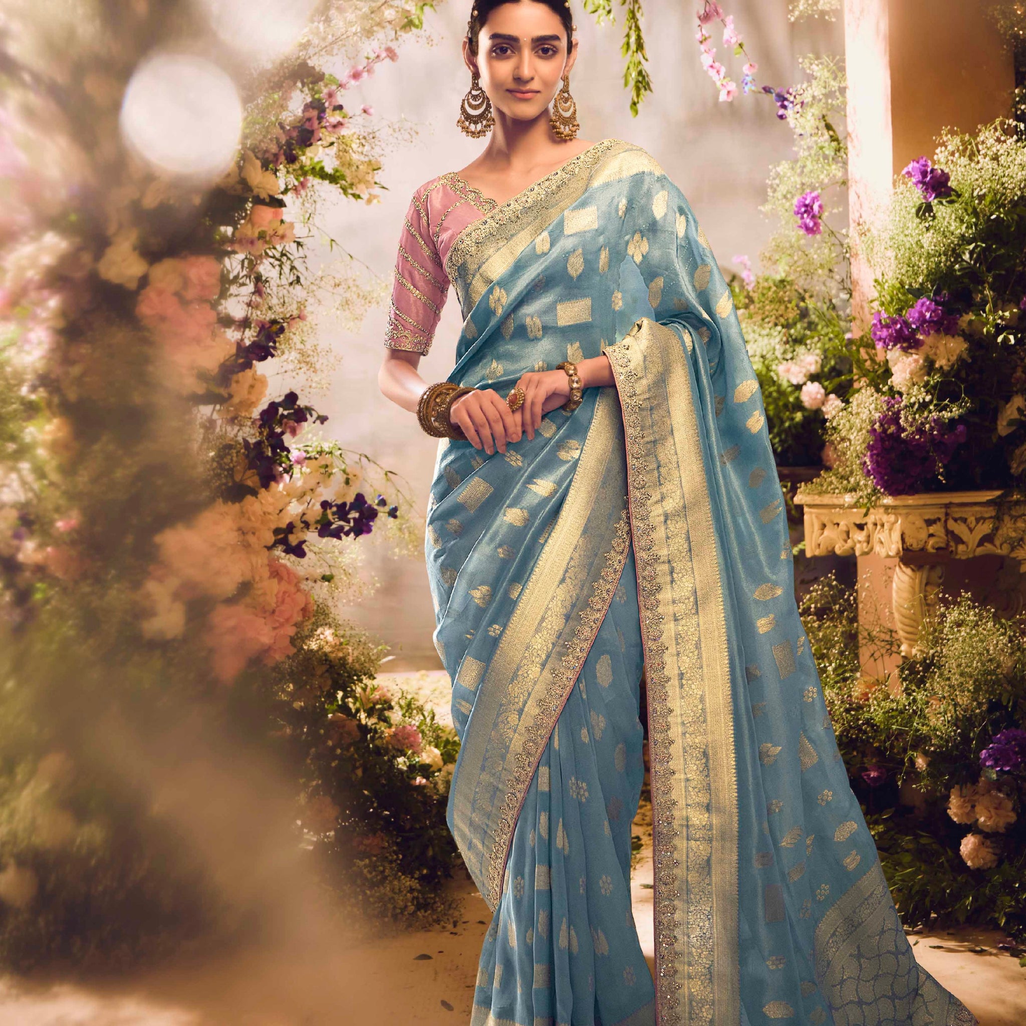 Sky Blue Tissue Silk Heavy Zari Weaving Banarasi Saree