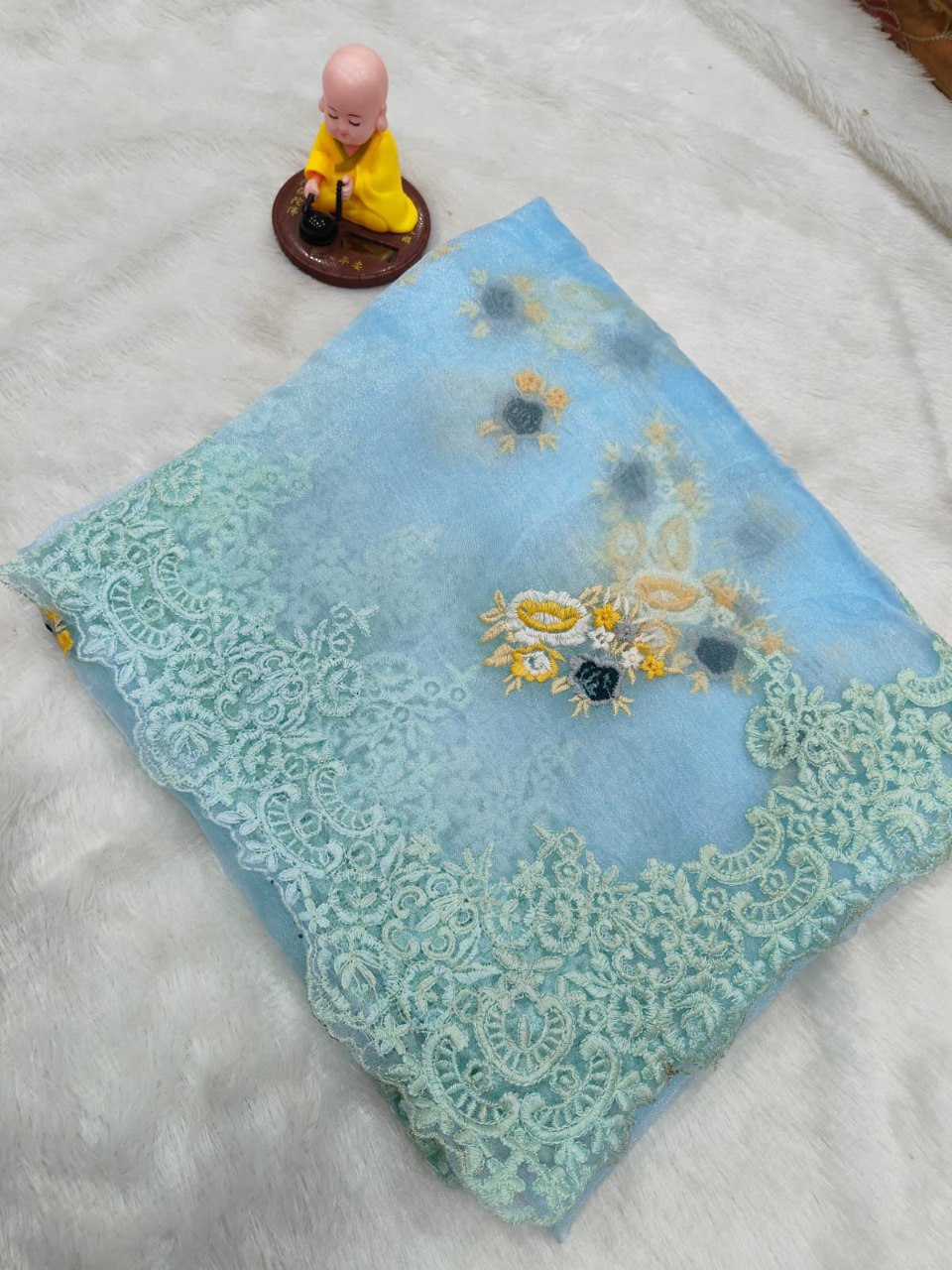Sky Soft Pure Organza Multi Thread Organza Saree