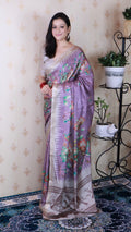 Rich digitally printed Pallu. Paired with Contrast printed plain Blouse.