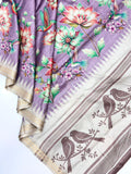 Soft Tussar Silk Sarees with Nature bird prints all over the body having arrow zari woven border on both sides