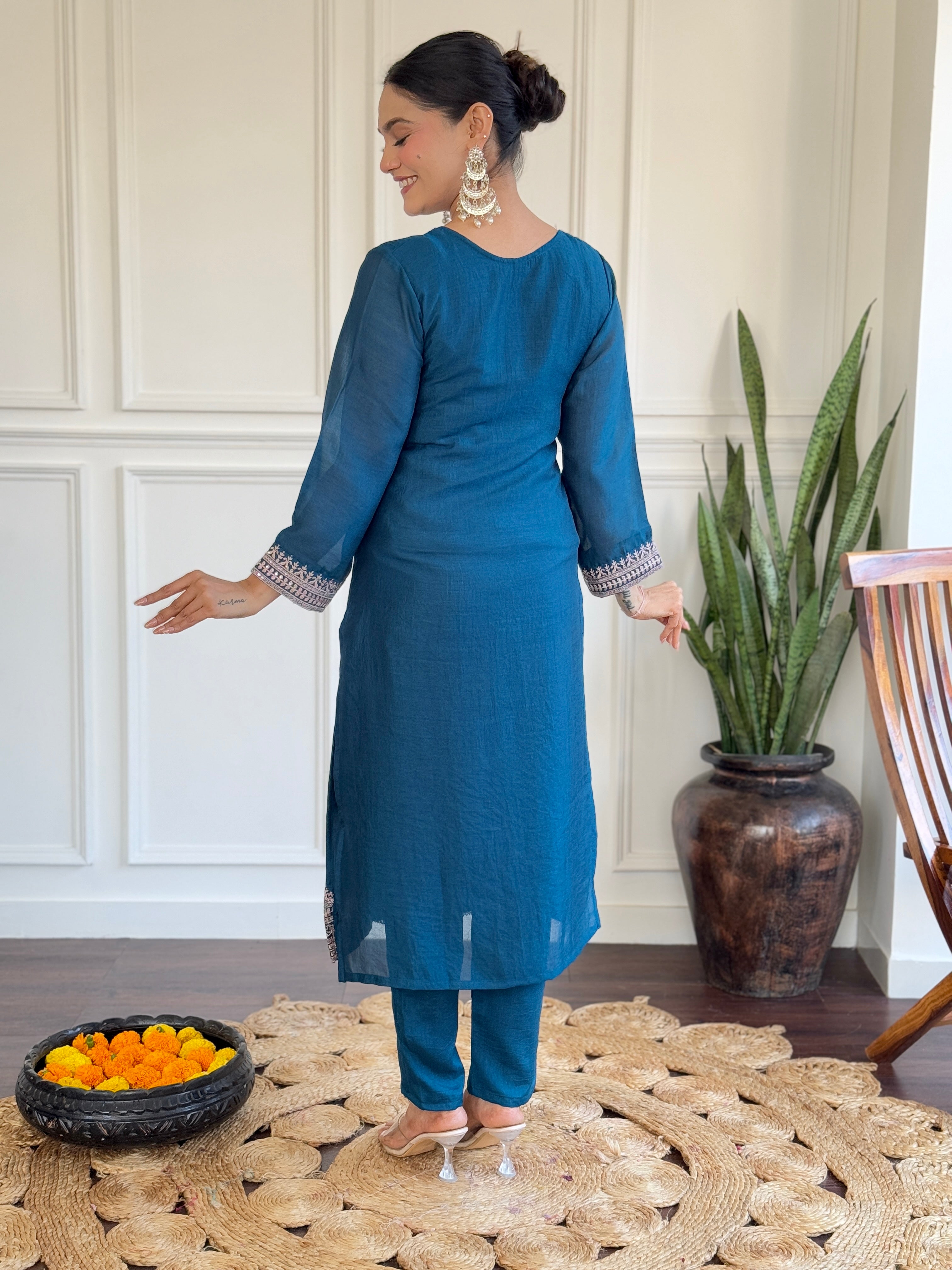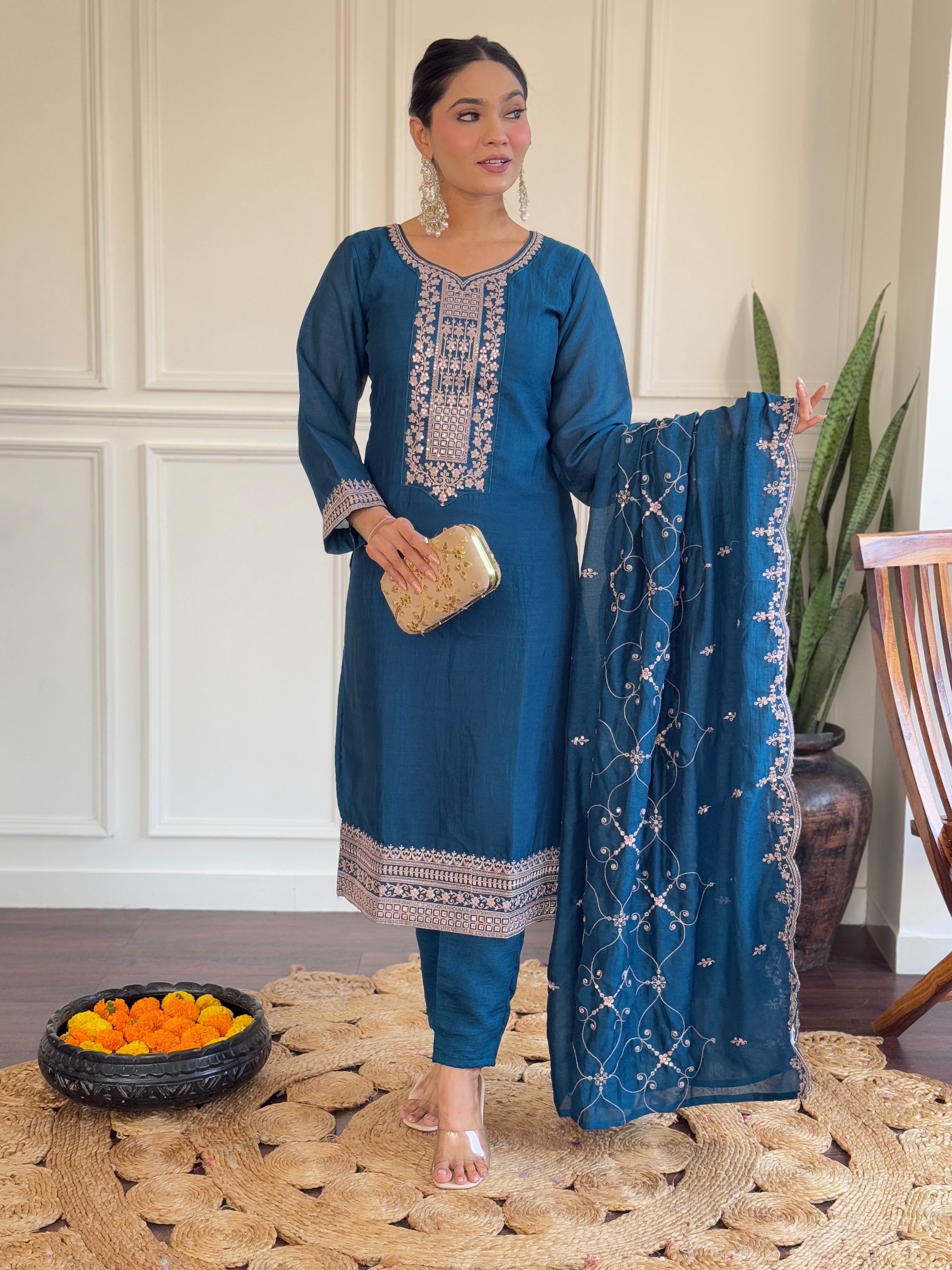 Why Choose This Teal Blue Vichitra Silk Kurti Set?