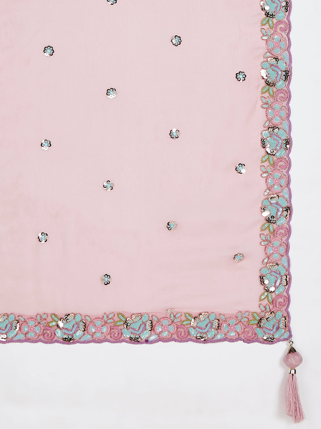 Teal Georgette Sequins and Thread Embroidery Lehenga Choli & Dupatta