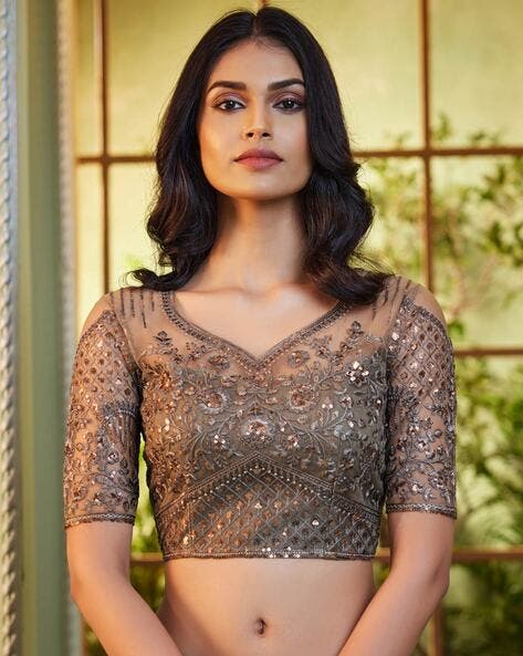 Teal Pure Georgette Burberry Silk With Floral Sequins Saree