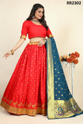 Get traditional touch to your look adorning this lehenga in jacquard material beautified with all-over weaving work comes with micro crap inner and cancan with canvase inside.With heavy duppta with all-over weaving work.